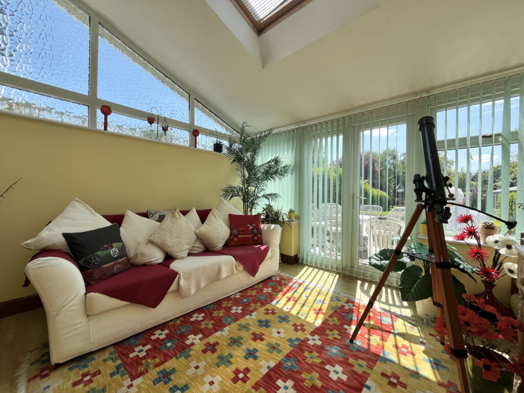 Upon entering, you're greeted by two well-proportioned reception rooms. The front reception boasts a large bay window that floods the space with natural light, complemented by a charming fireplace that creates a warm and inviting ambiance. To the rear, the second reception room flows seamlessly into a bright sun room, offering stunning views across the expansive, meticulously maintained rear garden — perfect for relaxing or entertaining guests.