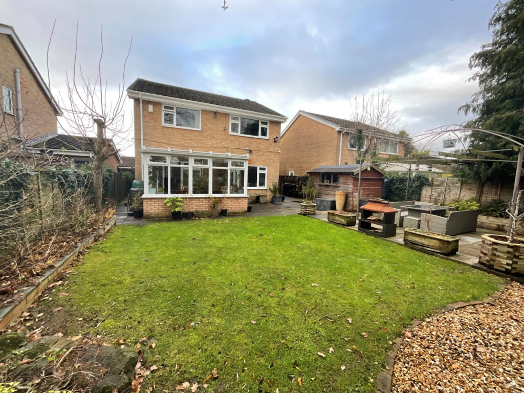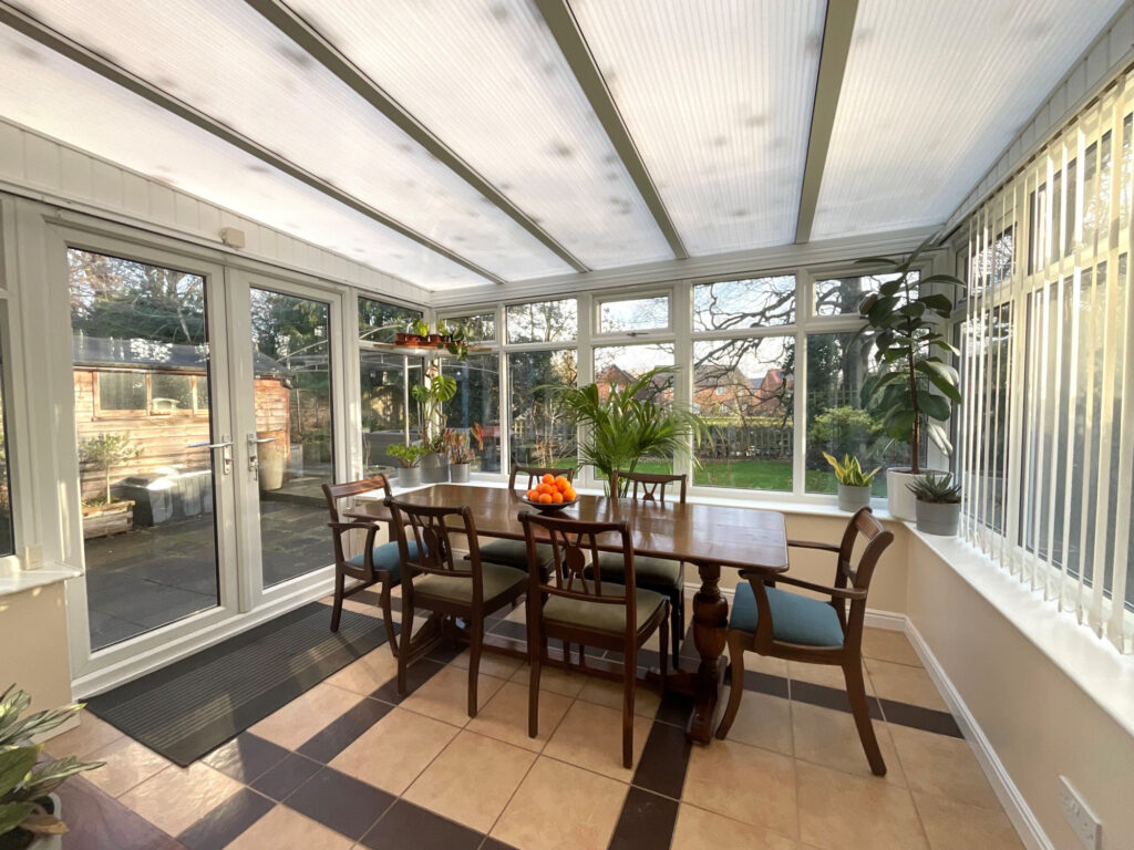 The conservatory extends the living space and enjoys beautiful views over the meticulously maintained rear garden. The garden offers a delightful outdoor dining and seating area, accompanied by a well-designed garden shed, complete with outside tap, lighting and a security system. The peaceful outlook over the serene duck pond creates a truly idyllic setting.