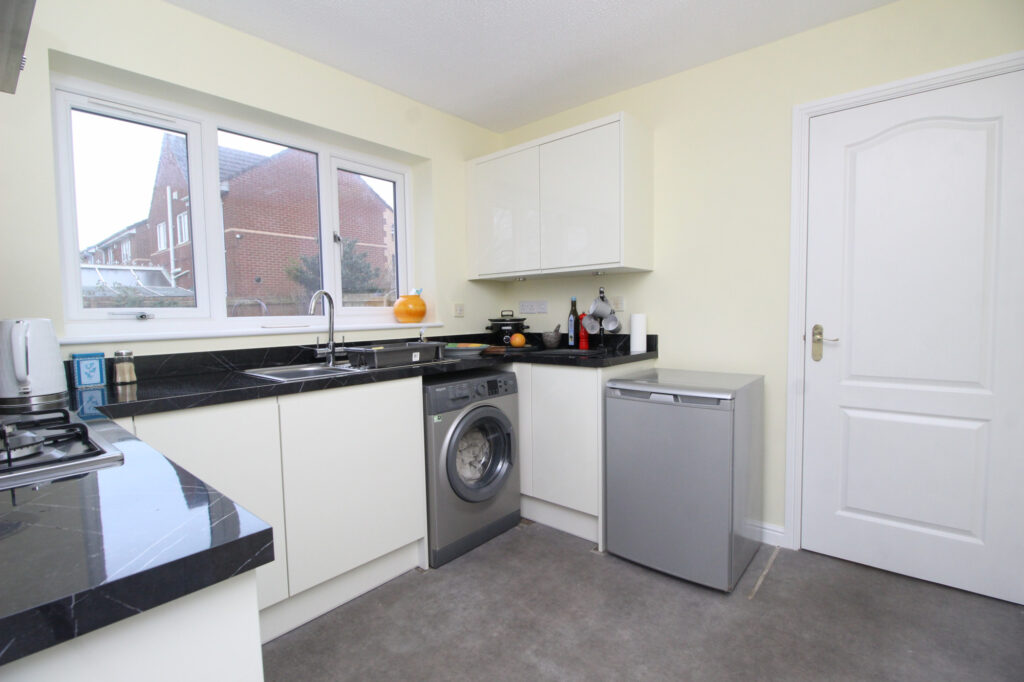 Upon entering the property you walk from the vestibule into the large living room and dining room. These rooms are flooded with natural light and can house multiple pieces of furniture. The kitchen boasts plenty of wall and base storage units with built in appliances, under stairs storage and access to the rear.