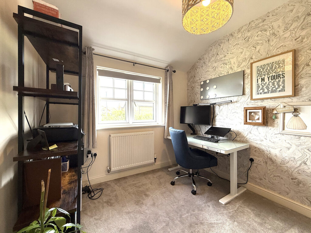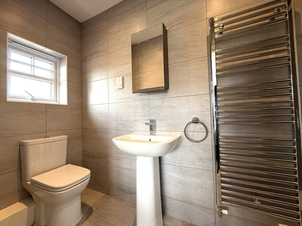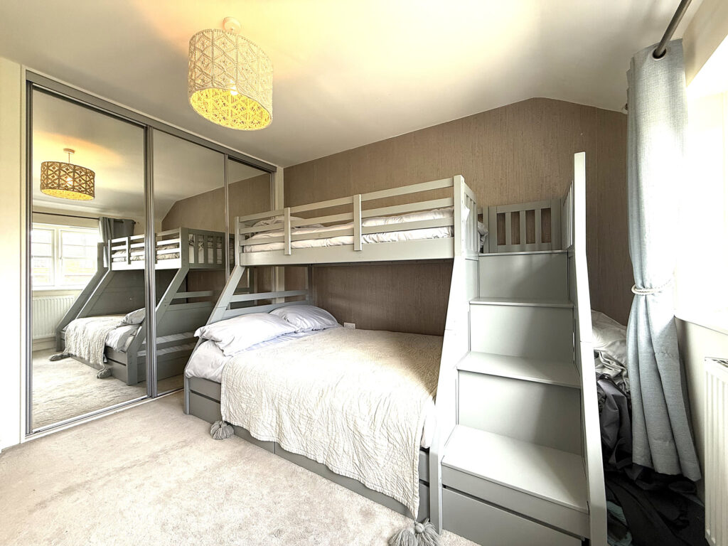 As you ascend the stairs to the first floor, you'll discover a thoughtful layout that provides easy access to all the rooms. The window on the side allows for an abundance of natural light to pour in, illuminating the space. A convenient loft hatch and storage cupboard are also located on this floor, perfect for keeping essentials within reach. The first bedroom is a serene retreat, boasting a large double configuration and ample storage courtesy of the fitted wardrobes with mirrored sliding doors. The adjacent en-suite is a haven of relaxation, complete with a corner walk-in shower, w/c, hand wash basin, and heated towel rail for the ultimate in comfort and convenience. The second and third bedrooms are also generously proportioned, each featuring double-sized accommodations and fitted wardrobes with sliding doors. The fourth bedroom, while slightly cozier, is still a comfortable large single room perfect for a home office or guest room. The family bathroom is a sleek and modern space, equipped with a bath and shower over, glass screen, hand wash basin, w/c, and heated towel rail. Throughout the property, you'll appreciate the complimentary wall and floor coverings, as well as the sleek chrome fixtures and fittings that add a touch of sophistication to each room.