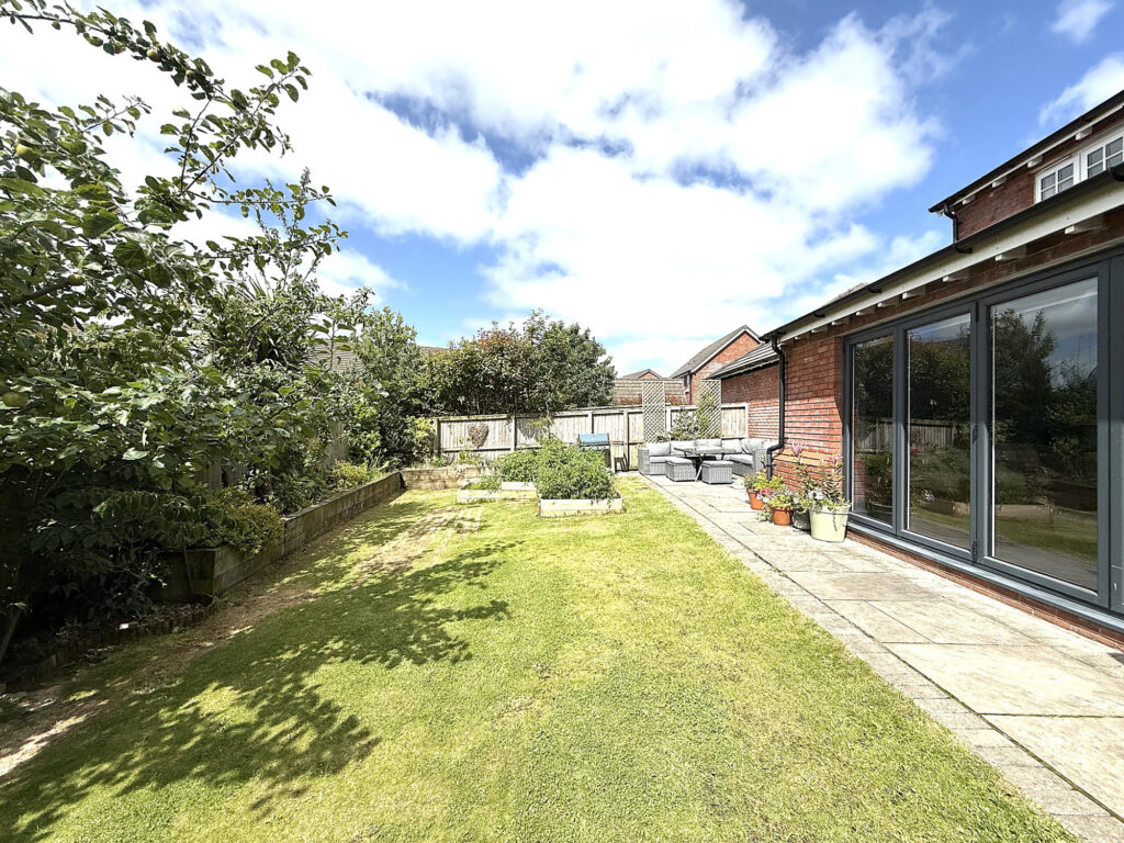 As you approach the property, you are greeted by a beautifully block paved driveway to the front, providing ample parking space for two cars. The lawn area, adorned with established shrubs to the side, creates a warm and inviting ambiance. The garage access and gated entrance to the rear ensure a secure and private environment. The rear of the property boasts a spacious lawn area, perfect for outdoor activities and relaxation. The secure privacy fencing surrounding the garden provides a sense of seclusion, while the established plants, trees, and shrubs in the raised borders add a touch of natural beauty. The large patio area, complete with raised vegetable planters, offers the perfect setting for al fresco dining and entertainment. With ample space for outdoor gatherings, this property is ideal for those who enjoy hosting friends and family.