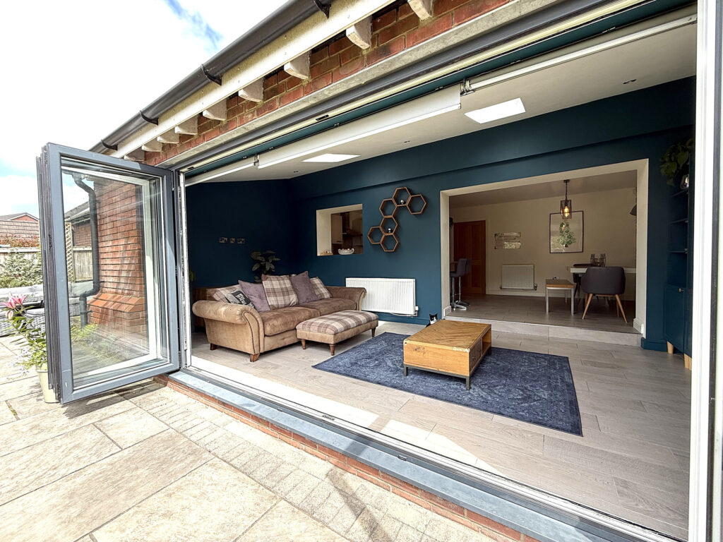 Upon entering the residence, you are greeted by a warm and inviting hallway that provides seamless access to all ground floor rooms, an integral garage, and an open spindle staircase that elegantly ascends to the first floor. The lounge is a generous space, perfect for relaxation and entertainment, with a stunning bay window that frames the front of the property, bathing the room in an abundance of natural light. The heart of the home is undoubtedly the open plan kitchen/diner, meticulously designed to combine sleek functionality with inviting warmth. This culinary hub is fitted with a range of stylish wall and base units, a breakfast bar that encourages casual dining and conversation, and complementary worktops and splash backs that add a touch of sophistication. Integrated appliances further enhance the kitchen's efficiency and aesthetic appeal. The dining area is spacious and leads gracefully into the family room, creating a seamless transition between dining, relaxation, and entertainment. The incorporation of Velux windows and bi-folding doors not only floods the space with natural light but also offers breathtaking views and direct access to the garden, blurring the lines between indoor and outdoor living. For added convenience, the property also features a utility room equipped with plumbing for appliances, ensuring that laundry and other household chores are managed with ease. Additionally, a conveniently located w/c adds to the practicality and comfort of the ground floor layout, making this home a perfect blend of style, functionality, and warmth.
