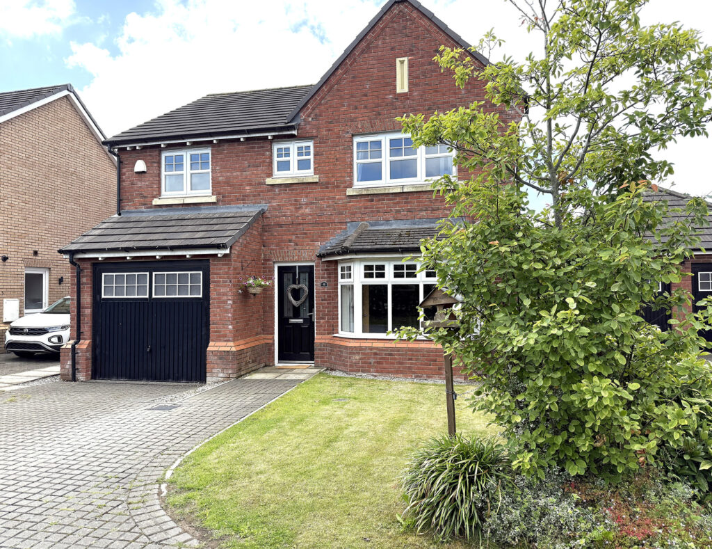 Nestled in a picturesque semi-rural setting, this exquisite detached residence presents a rare opportunity to acquire a beautiful extended family home, meticulously designed to provide a perfect blend of comfort, style, and functionality. As you step inside, you will be greeted by the tasteful décor and exceptional quality of the fixtures and fittings, which have been carefully selected to create a warm and inviting atmosphere. The true heart of the home is the stunning open-plan kitchen/dining/family room, where sleek design meets practicality, perfect for entertaining and everyday living. The seamless integration of indoor and outdoor spaces is achieved through the clever use of bi-folding doors, which lead out onto the rear garden, creating an idyllic setting for alfresco dining and relaxation. The property also features a utility room, providing additional storage and convenience. The sleeping quarters comprise four generously proportioned bedrooms, with three benefiting from fitted wardrobes, offering ample storage for clothing and personal items. The master bedroom boasts an elegant en-suite, providing a serene retreat for relaxation and rejuvenation. This bright and airy property is filled with an abundance of natural light, creating a sense of warmth and welcome throughout. Additional features include an integral garage, providing secure parking and storage, and a driveway with parking for two cars, ensuring ample space for residents and visitors alike. With its unique blend of rural charm and tailored amenities, this beautiful extended family home is the perfect haven for those seeking a peaceful and idyllic lifestyle.