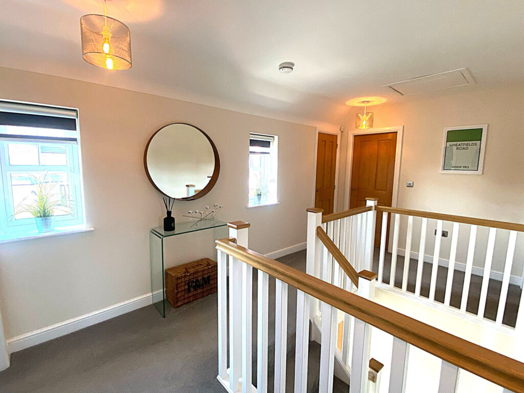 Ascend the elegant staircase to the first-floor gallery landing, where you will find ample storage solutions designed to meet your organizational needs. The inviting master bedroom offers a private retreat, complete with convenient access to a well-appointed en-suite shower room, ensuring comfort and privacy. The second bedroom is currently transformed into a functional home office, perfect for those seeking a productive workspace within their living environment. This room is fully equipped to cater to your professional needs while providing a serene atmosphere. The property also features two additional bedrooms, each thoughtfully designed to maximize space and comfort. Bedroom four comes with fitted wardrobes, providing generous storage options and is currently utilized as a stylish dressing room, offering a luxurious touch to your daily routine. Completing this splendid first floor is a beautiful four-piece family bathroom, thoughtfully designed for both relaxation and practicality. This space serves as a perfect sanctuary for unwinding after a long day, combining functionality with aesthetic appeal.