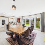 At the heart of the home lies a truly striking open-plan kitchen, dining, and family area, an impressive, sociable space designed for both everyday living and special occasions. The kitchen is beautifully appointed with modern fittings, ample worktop space, and plentiful storage, making it as functional as it is stylish. There is plenty of room for a large dining table and additional seating, creating a versatile hub where family and friends can gather. Large windows and doors allow natural light to pour in while providing a seamless connection to the garden.
