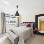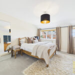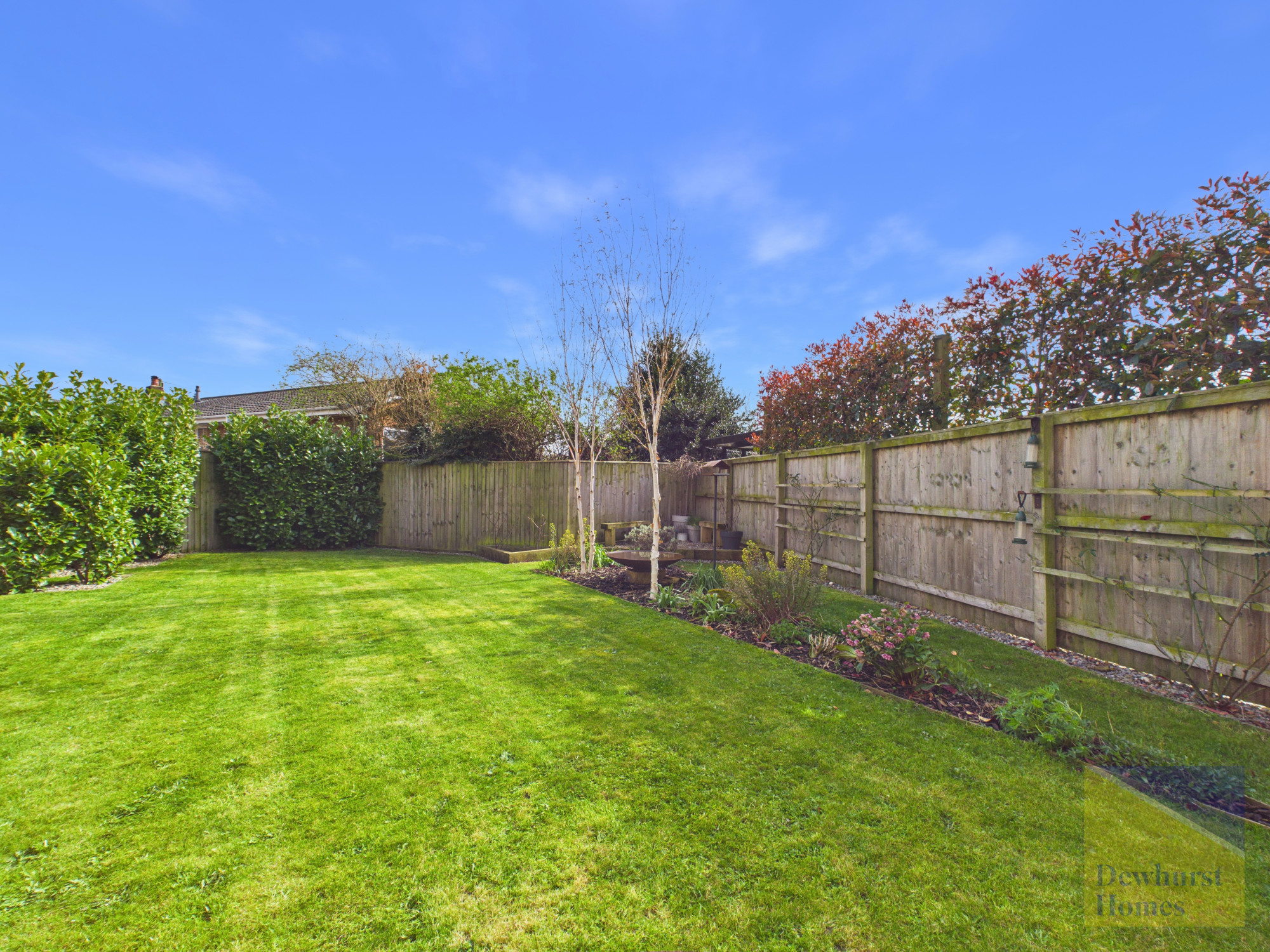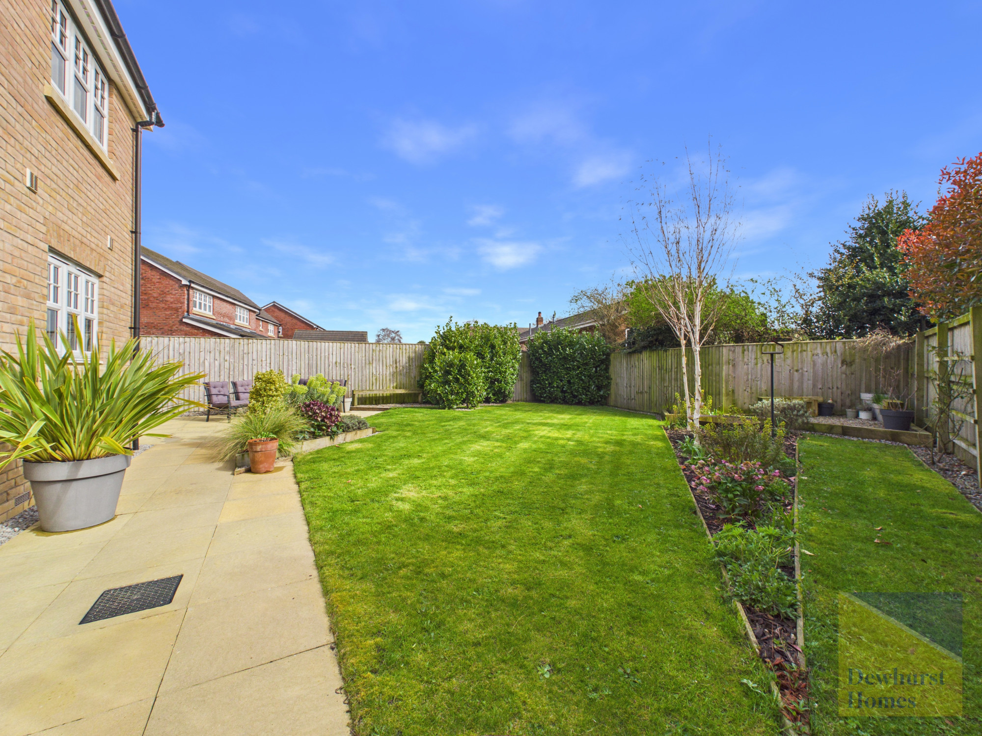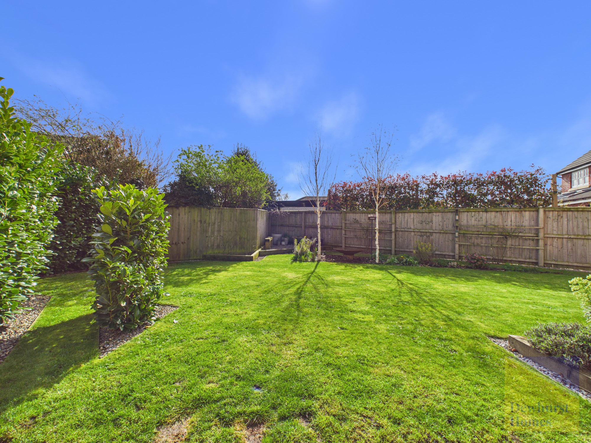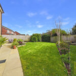 The rear garden is a true highlight, fully enclosed and secure, making it ideal for children and pets. A spacious patio area provides the perfect setting for outdoor dining, summer barbecues, or simply unwinding in the fresh air. Beyond this, a lush, well-kept lawn is complemented by beautifully nurtured plant beds, creating a vibrant yet peaceful outdoor space that can be enjoyed throughout the seasons.