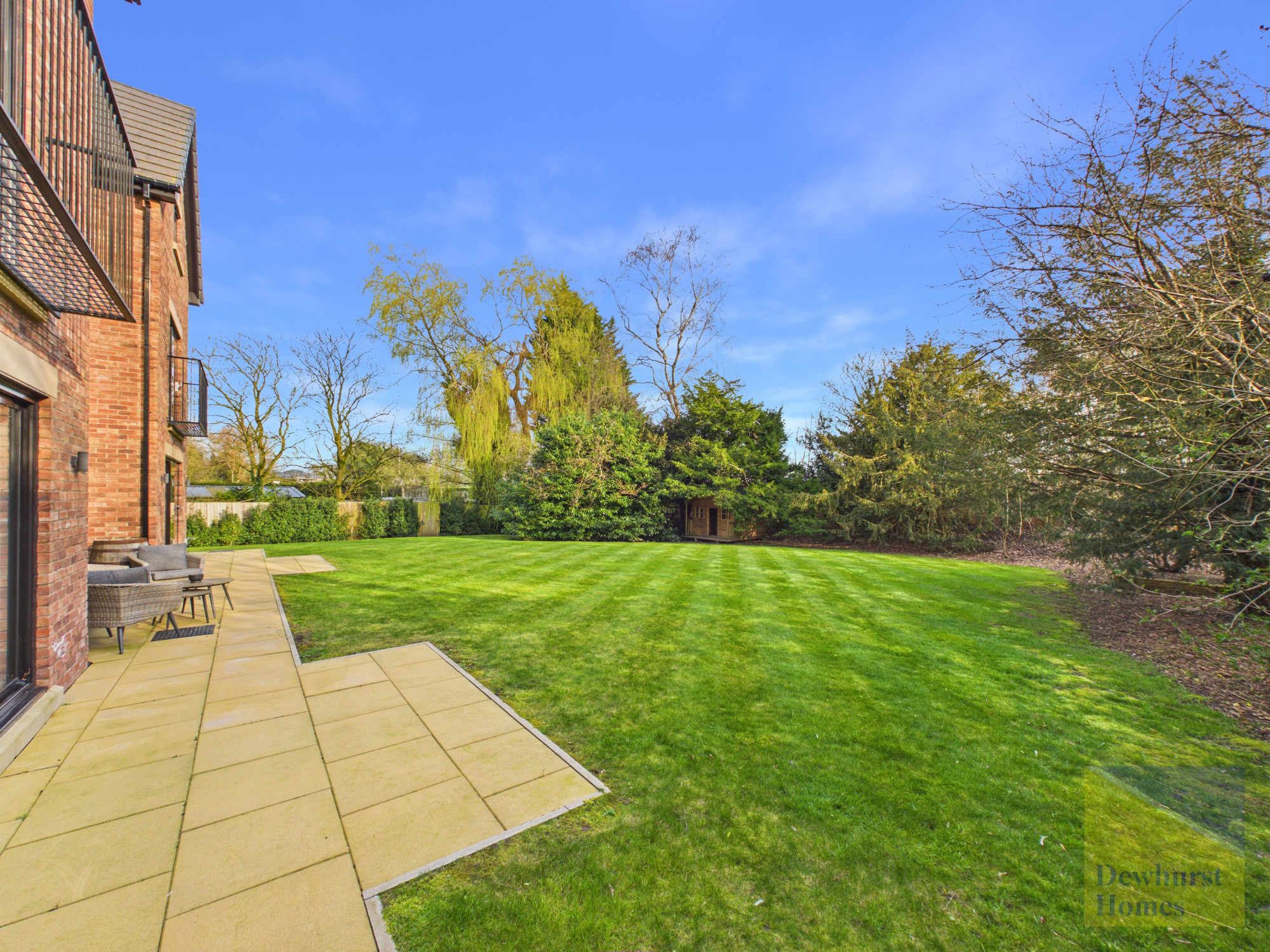 Externally, the property continues to excel. Set within a commanding plot, the gardens wrap gracefully around the side and rear of the home, offering a wonderful sense of space and seclusion. The grounds are predominantly laid to manicured lawns, bordered by mature planting that provides both colour and privacy throughout the seasons. A paved patio area creates the perfect setting for outdoor dining, entertaining, or simply enjoying the peaceful surroundings.