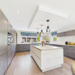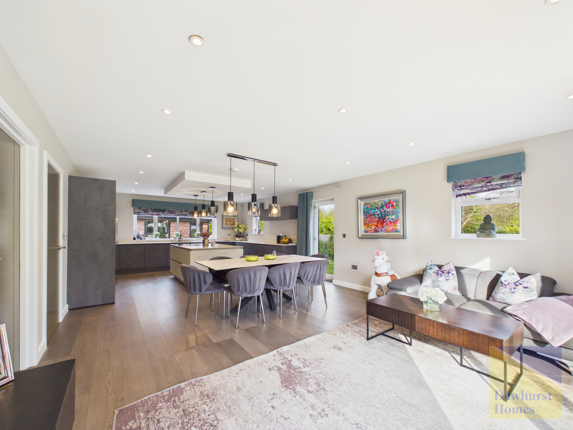 At the heart of the home lies a truly outstanding open-plan kitchen, dining and living areaβan expansive and sociable space designed to bring people together. The kitchen itself is beautifully appointed with high-end integrated appliances, sleek contemporary cabinetry, and extensive work surfaces, complemented by a central island that serves as both a practical workspace and informal gathering point. The adjoining dining and living areas offer ample room for entertaining on any scale, while bi-fold doors open directly onto the rear terrace, effortlessly blending indoor and outdoor living during the warmer months. A separate utility room provides additional functionality, keeping the main living areas both practical and uncluttered.