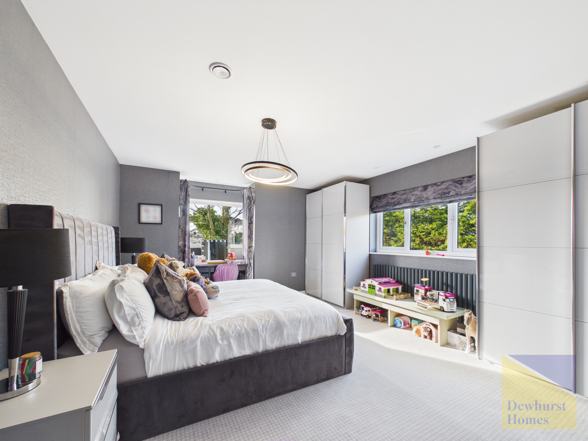 Two of the remaining bedrooms are located on the top floor, each enjoying excellent proportions and the added luxury of their own walk-in dressing rooms, creating ideal guest suites or private retreats. Each of the bedrooms within the home benefits from its own private en-suite bathroom, all finished to an exacting standard with contemporary styling and premium fixturesβensuring comfort and privacy for family members and guests alike.
