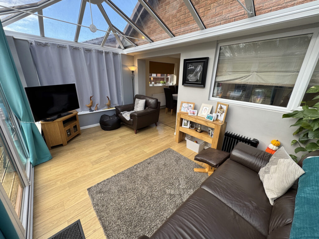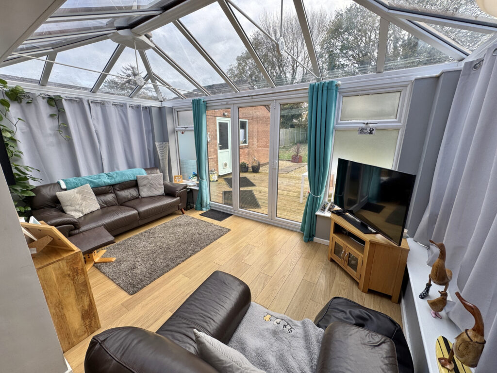 Inside, the bungalow boasts a welcoming entrance hallway that spans through into a wonderfully flowing floor plan. A spacious open-plan dining kitchen is the rear hub of the home providing an extensive arrangement of fitted units and complementary work surfaces making it a chefs dream. The dining space is ideal for this that love to entertain andthat flows seamlessly into a fantastic living room / conservatory, perfect for relaxation and captures the views of those wonderful gardens. Moving to the private spaces which include three well-proportioned bedrooms, a bathroom with a shower over bath, and a separate WC.