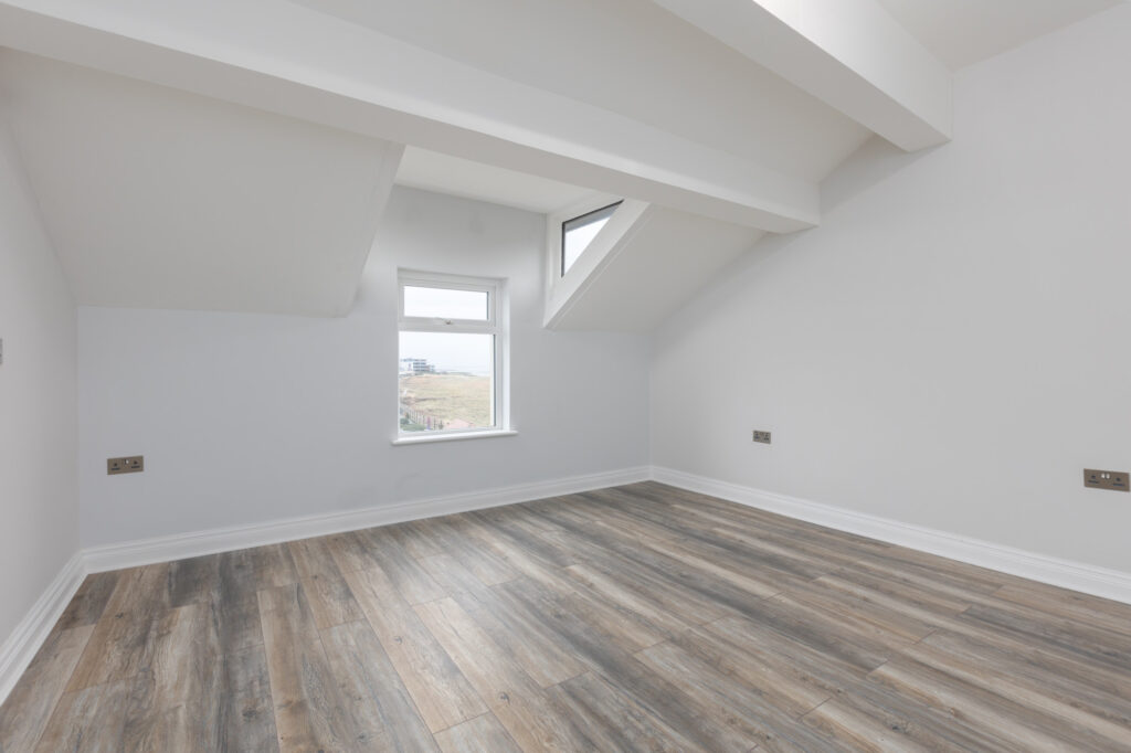 The accommodation briefly comprises, to the ground floor; entrance hallways with utility/WC. To the first floor is a mezzanine with Juliet Balcony and master bedroom with walk in storage and four piece bathroom. To the second floor is the second double bedroom with en-suite shower room. The hallway leads to the impressive open plan living/dining kitchen with picture window allowing you to take in the breathtaking sea views.