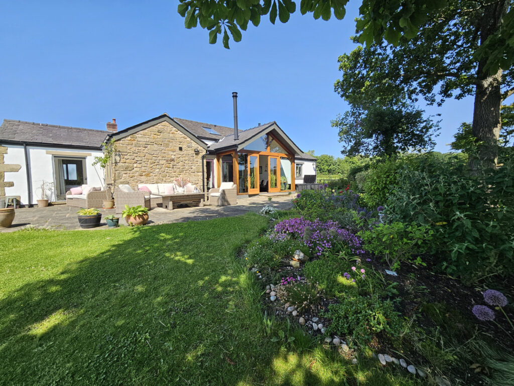 Welcome to this exquisite 2-bedroom detached property, a bespoke gem nestled in the sought-after location of New Row, Knowle Green. Built in 2018, this modern stylish interior home offers a luxurious lifestyle with stunning panoramic rural views that capture the essence of tranquility and natural beauty. The property boasts a large master suite with breathtaking views, a guest bedroom with an en suite and dressing room, and a spacious kitchen featuring an AGA. The large orangery with a coal burner is perfect for entertaining or simply enjoying the beauty of the outdoors from the comfort of your home. The use of reclaimed wood features adds a touch of rustic charm to the modern design, creating a unique and inviting atmosphere.