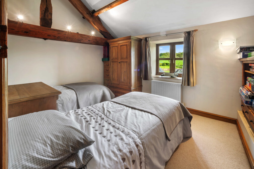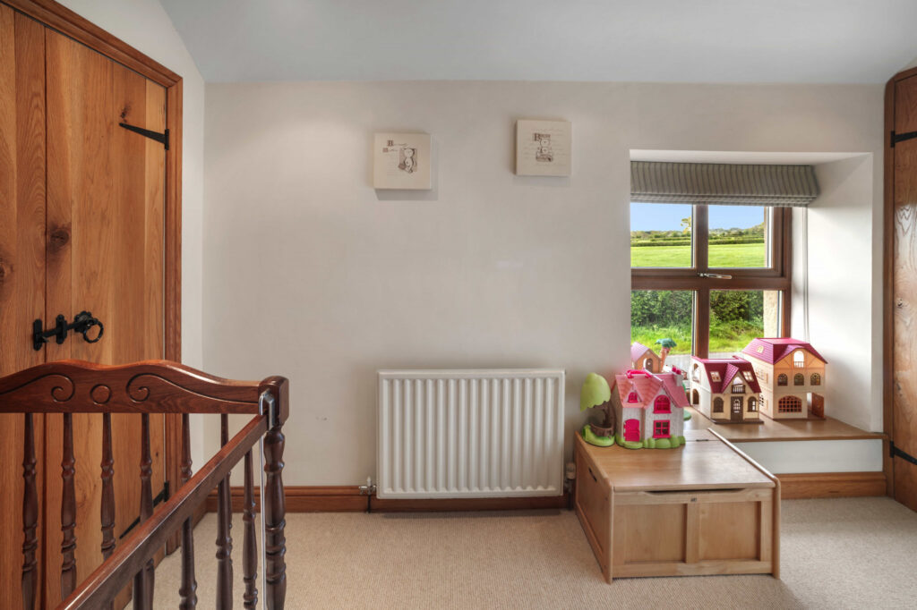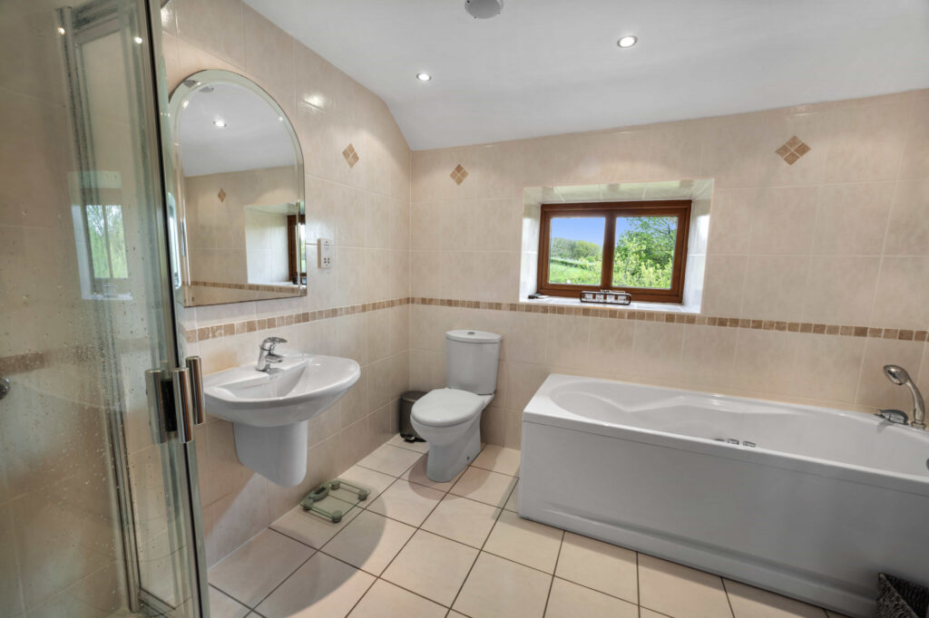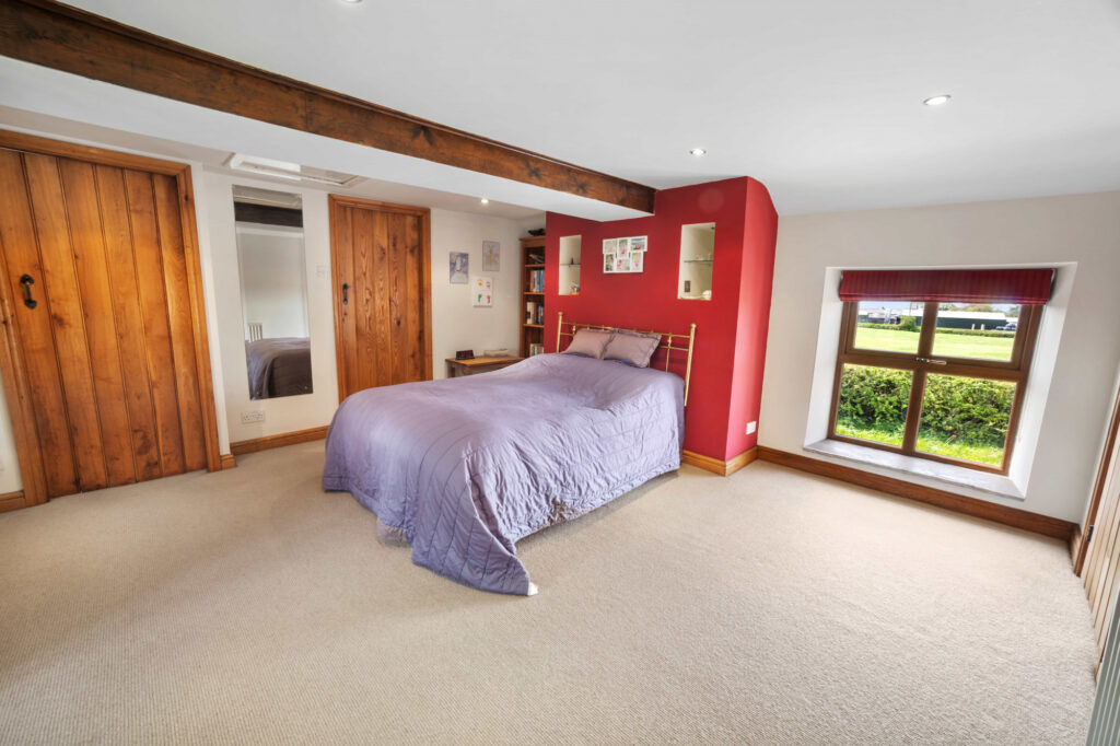 To the first floor the landing splits. The principal bedroom offers dual aspect views of the countryside and a separate dressing room provides plenty of storage space. A three-piece en-suite has shower cubicle, wall hung wash hand basin and low level wc. Across the landing there are two further generous double bedrooms and a single bedroom with airing cupboard and storage. A four piece fully tiled family bathroom has shower cubicle with mains shower, jacuzzi bath, low level wc, wall hung wash hand basin and integrated wall TV.