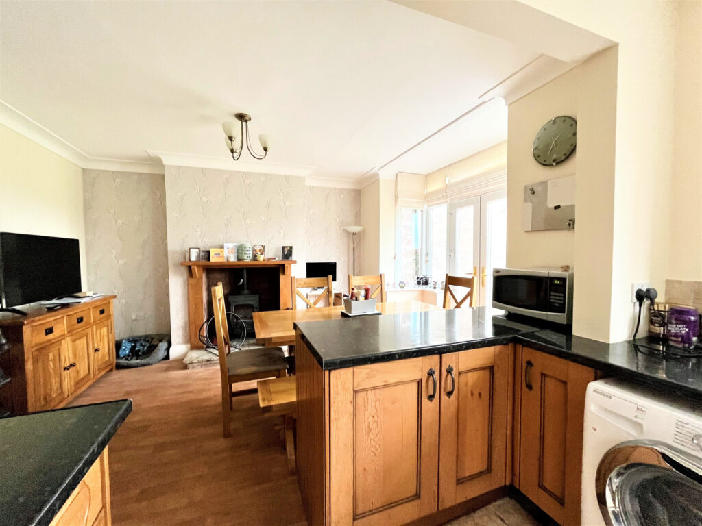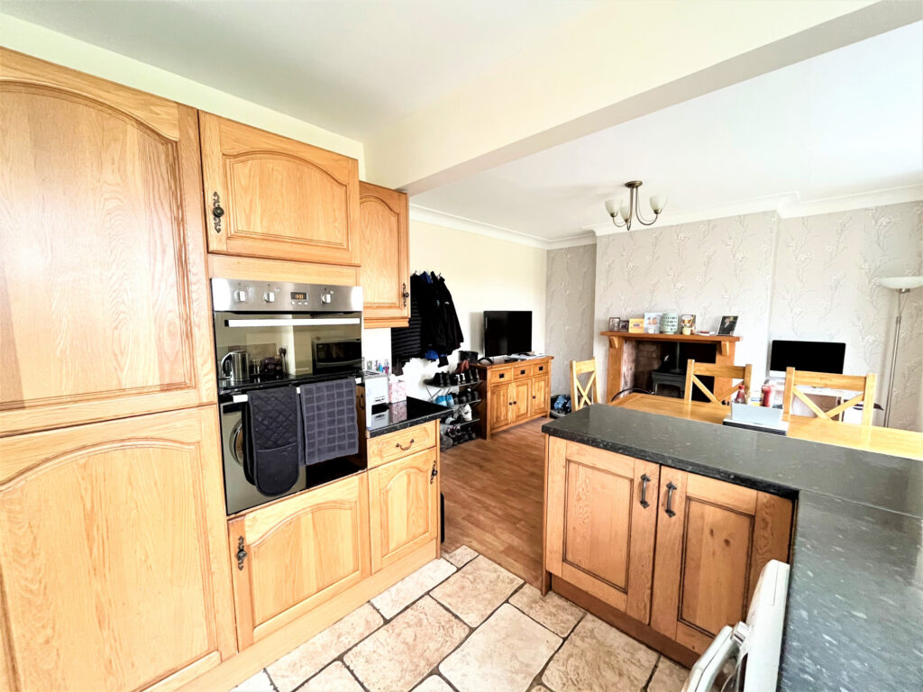 The accommodation comprises to the ground floor, entrance vestibule, hallway, living room, open plan kitchen/dining room. To the first floor are three good sized bedrooms and family bathroom. Externally to the front of the property is a driveway with laid to lawn garden with established bushes and shrubbery. The rear garden is laid to lawn with paved patio area. With stunning views to the rear. Access to the detached garage and covered ginnel.