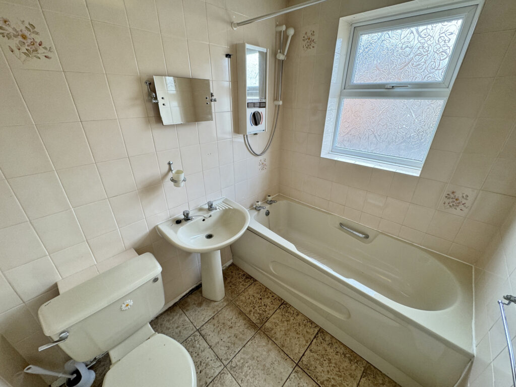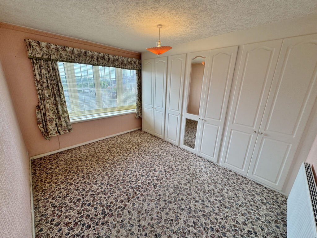 On internal inspection the layout reveals an L shaped entrance hallway, a spacious bay fronted lounge with a feature fireplace, a dining kitchen with a range of matching units and ample space to house the essential appliance. Moving into the private spaces the hallway leads you off to two double bedrooms both of which have a range of built in wardrobes/storage; whilst the bathroom offers a three piece suite.
