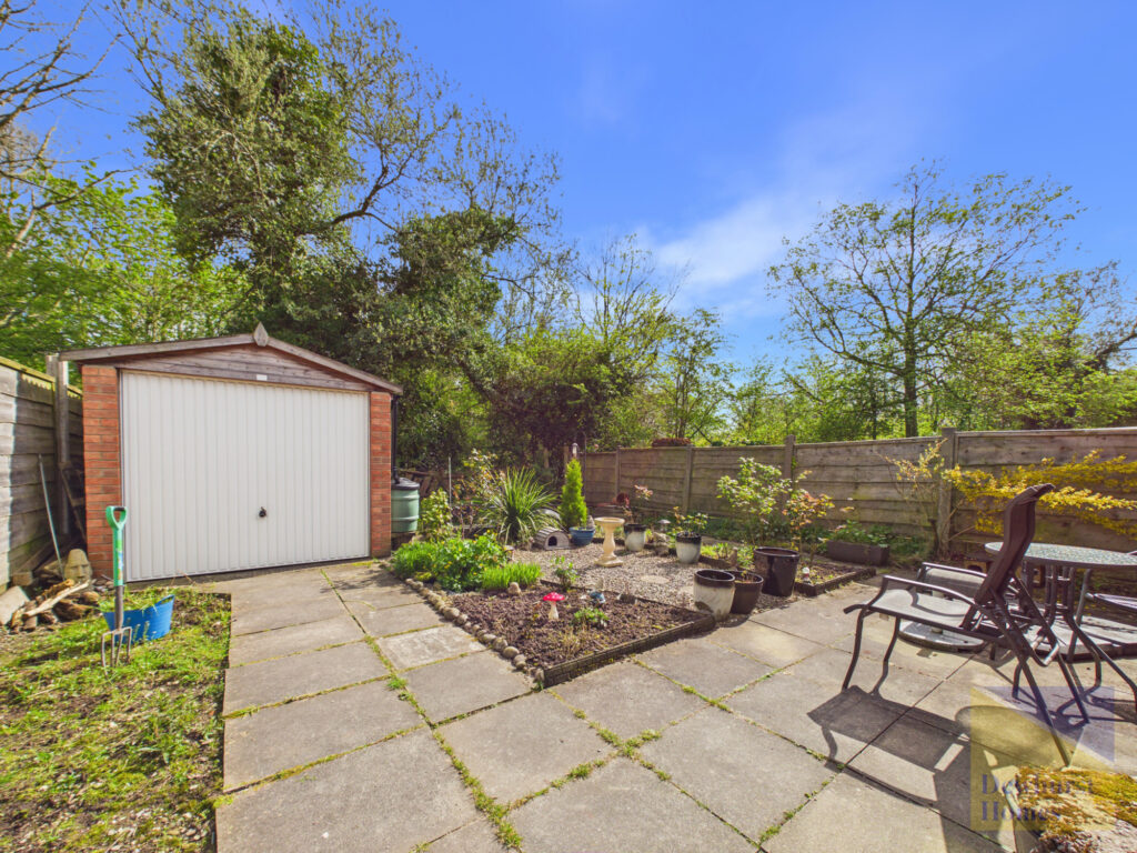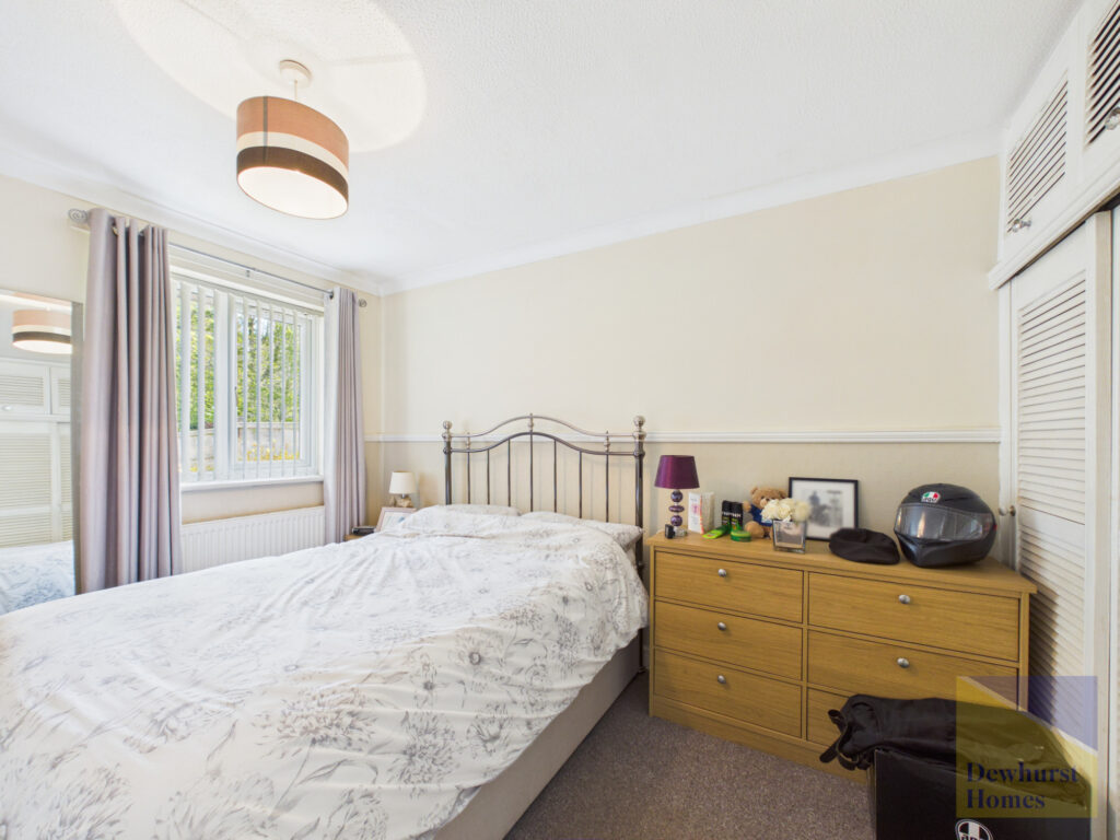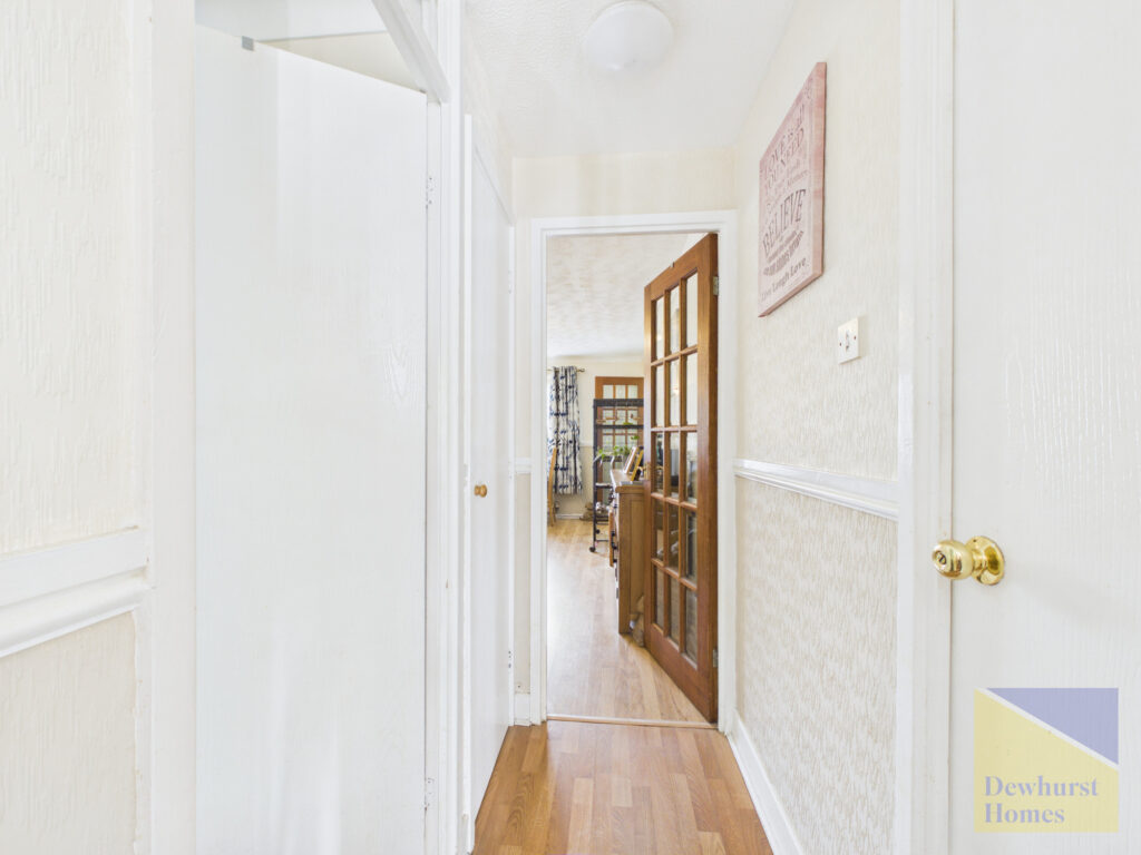 An inner hallway provides access to the remaining accommodation and includes further storage and loft access. There are two well-proportioned double bedrooms, both offering comfortable living space. The principal bedroom overlooks the rear garden and benefits from fitted wardrobes and cupboards, while the second bedroom enjoys French doors opening directly onto the garden, along with an additional side window, enhancing the sense of light and space.