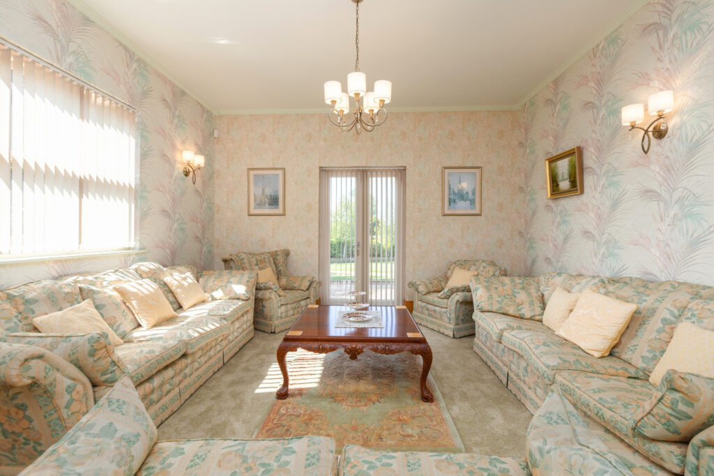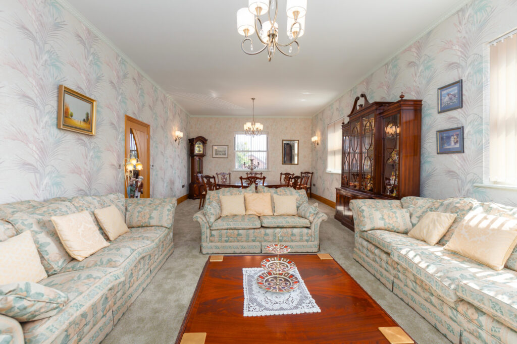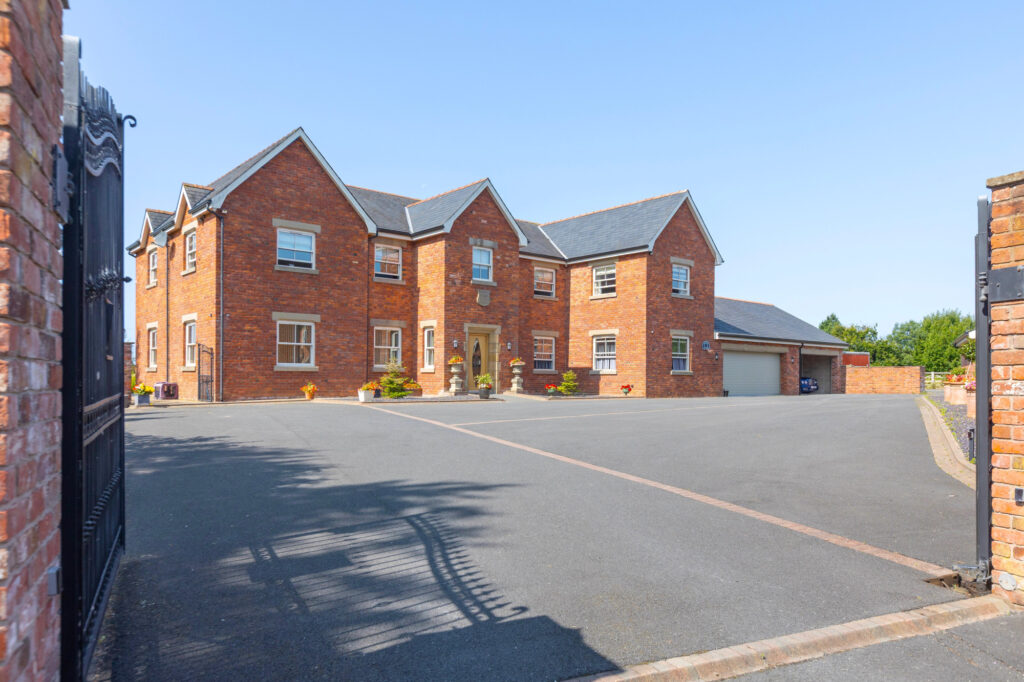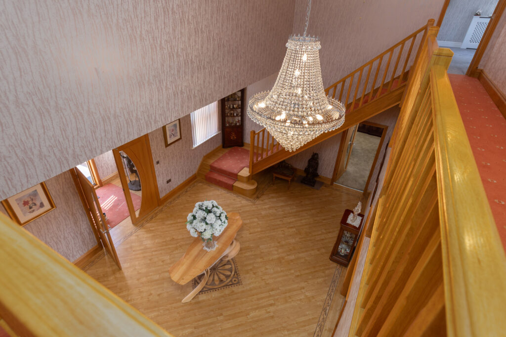Set behind secure electric gates, the property makes an immediate statement with a grand entrance hall featuring soaring ceilings, setting the tone for the elegance and spaciousness found throughout.