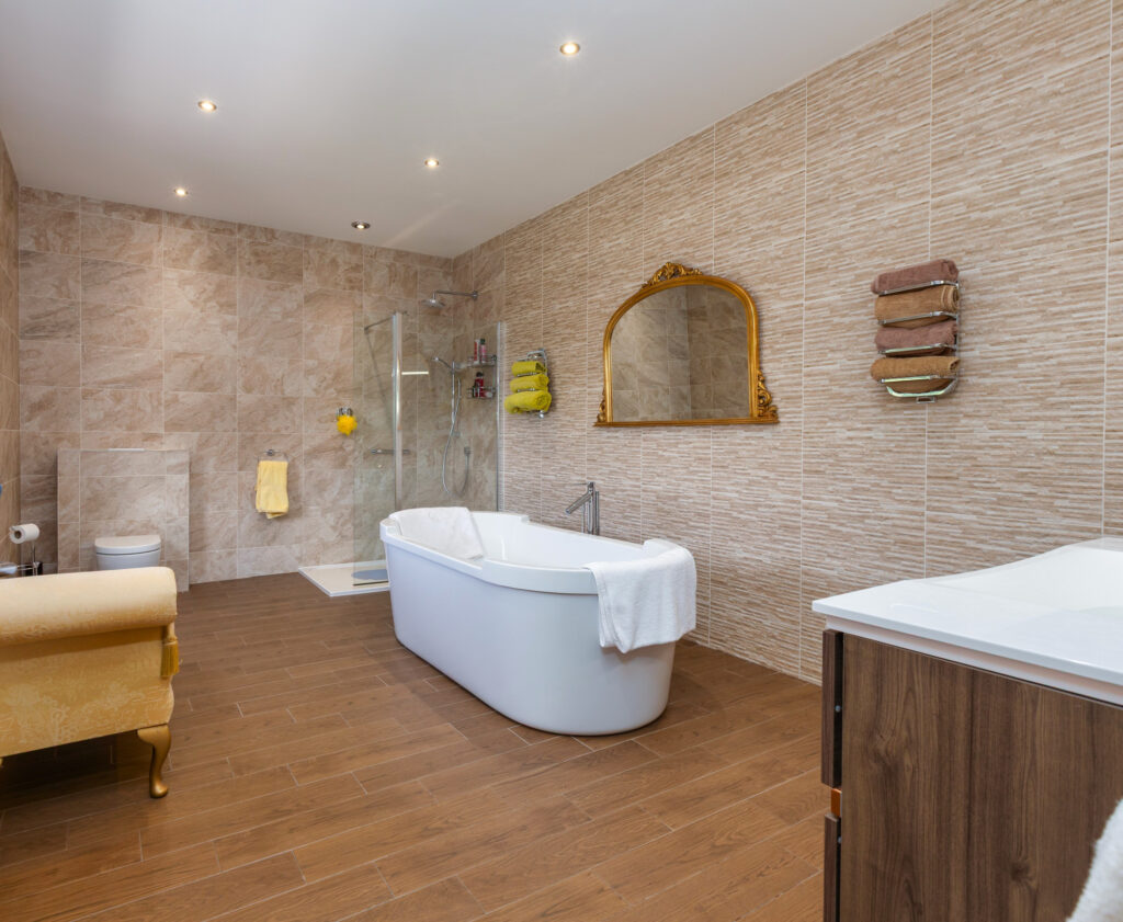 Each of the five generously proportioned bedrooms benefits from its own en-suite bathroom, ensuring privacy and comfort for both family members and guests.