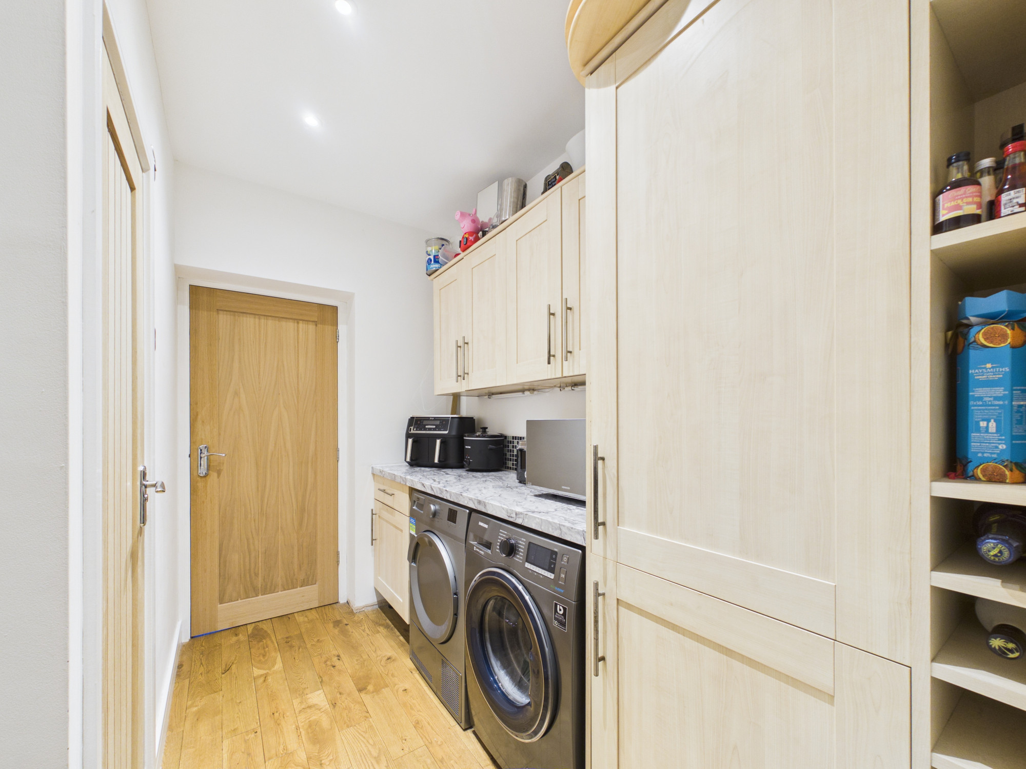 The ground floor continues to impress with a stylish utility room offering fitted storage and space for laundry appliances, alongside a sleek three-piece shower room β a thoughtful and luxurious addition for modern family life.