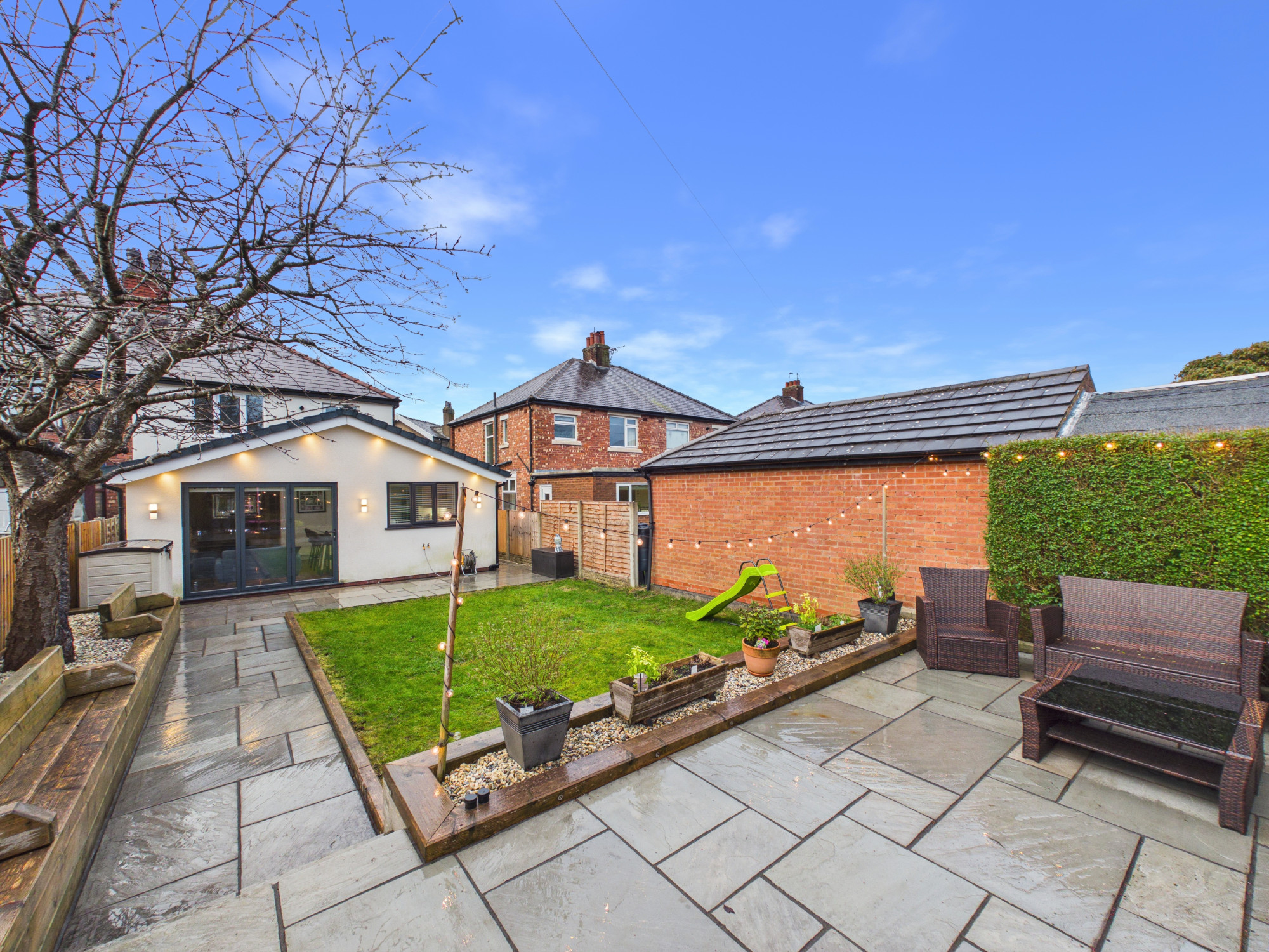 Externally, the property is just as impressive. The front offers a private driveway providing off-road parking and a well-maintained lawned garden. To the rear, the beautifully landscaped garden is a true sanctuary, enjoying a good degree of privacy. With manicured lawns, elegant patio areas and carefully placed feature lighting, it is a space designed for relaxation, entertaining and memorable summer evenings. A garage, accessed from the rear, provides additional storage or parking and benefits from an up-and-over door with access to the side road.