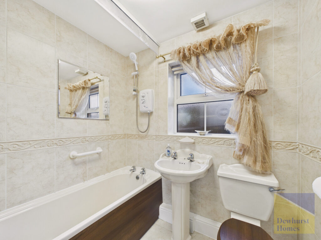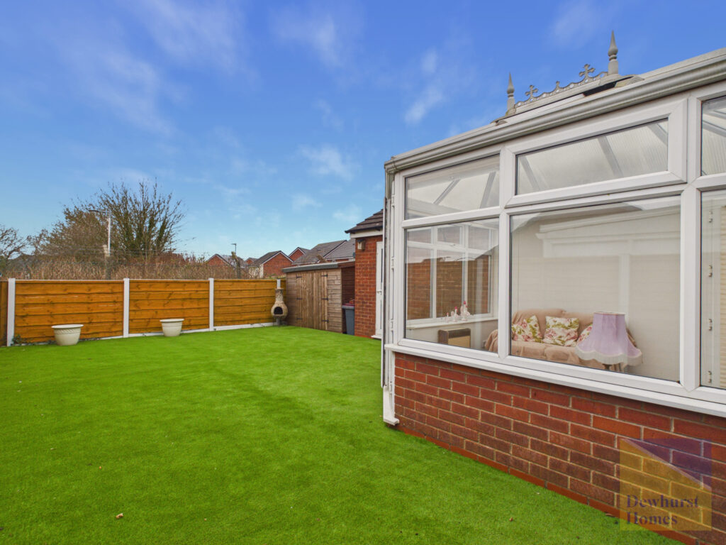 Externally, the bungalow benefits from a low-maintenance rear garden, thoughtfully designed with Indian stone paving covered with artificial grass, combining an attractive appearance with ease of upkeep and providing an ideal outdoor space with minimal maintenance required.