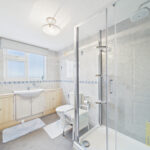 Upstairs, the property features two well-proportioned double bedrooms, both offering comfortable space and pleasant outlooks. A large shower room serves the first floor, providing practical and well-appointed facilities for the upstairs accommodation.