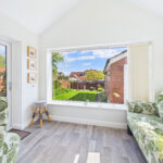 The property boasts a recently fitted modern kitchen with high-quality Neff appliances, opening into a bright sunroom with doors leading out to a beautifully maintained rear garden. The garden features a lawn with well-stocked plant and shrub borders, providing an ideal space for relaxing or entertaining.