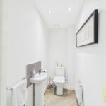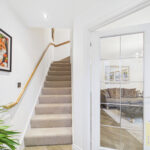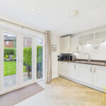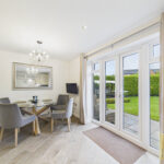 The entrance hallway leads into a bright, comfortable living room, offering a relaxed space to unwind. There’s also a practical ground floor cloakroom and a spacious dining kitchen, where patio doors open directly onto the garden ideal for everyday living and family dining. The ground floor is finished with stylish wood effect ceramic tiles, giving a smart and durable finish throughout