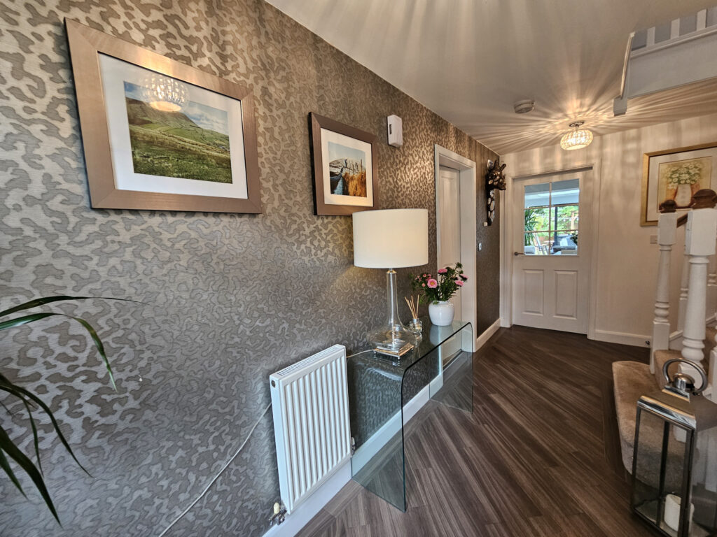 A most impressive and stylish four bedroom detached family home presented to an impeccable standard throughout. Enjoying a choice position on this excellent development built by David Wilson Homes, the property is situated on a quiet cul de sac with lovely open aspects to the front. Within easy walking distance to Longridge town centre we anticipate this stylish, extended family home will be of interest to many. The well proportioned accommodation offers living space which briefly comprises: Entrance hallway, cloakroom, study, lounge and a superb fitted kitchen dining and family room.The recent extension is of quality build having an atrium window and bi-fold doors onto the garden. A generous seating area with a remote control 'Gazco Loft’ fire provides a focal point. This really is the hub of the home. A separate utility room concludes the ground floor. Up the turned staircase to first floor the landing gives way to a master bedroom and en-suite shower room, three further double bedrooms and a family bathroom. Externally to the front a welcoming well tended garden has mature trees and shrubs. To the side, the driveway leads to single garage having light and power and privacy door. The striking rear landscaped garden has a block paved seating area providing ample room for dining and entertaining. The well manicured lawn is surrounded by borders filled with a beautiful display of mature plants and a pergola adds the finishing touch. A truly stunning home. Early viewing is highly recommended.
