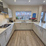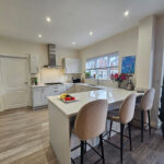 - Spacious open plan dining kitchen with high-end appliances and French doors to garden