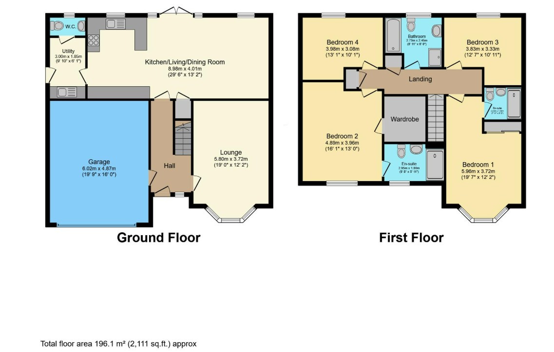 The ground floor features a bright formal lounge with an attractive bay window and a superb, open-plan kitchen/dining/family area, the true heart of the home, complete with French doors leading out to the landscaped and well-maintained rear garden. With upgraded appliances, KardeanΒ flooring and Quartz worktops. A separate utility/boot room with similar upgrades and cloakroom complete the ground floor.