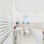 Upstairs, the home offers four well-proportioned bedrooms, including a generous master bedroom with fitted wardrobes and a private en-suite bathroom. Each bedroom has been designed with practicality and comfort in mind, offering plenty of space for furniture and storage.The family bathroom and en-suite are furnished with modern fixtures and fittings , with tiled flooring and complementary part tiled walls.