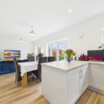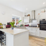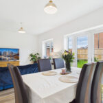 The ground floor features an impressive open-plan layout, with a bright and spacious lounge that offers the perfect setting for relaxing or entertaining. Large windows flood the room with natural light, creating a warm and inviting atmosphere. The adjoining kitchen/diner has been thoughtfully designed for modern living, having integrated appliances, and ample space for family dining. Whether you enjoy everyday cooking or hosting dinner parties, this fabulous kitchen provides the ideal backdrop.