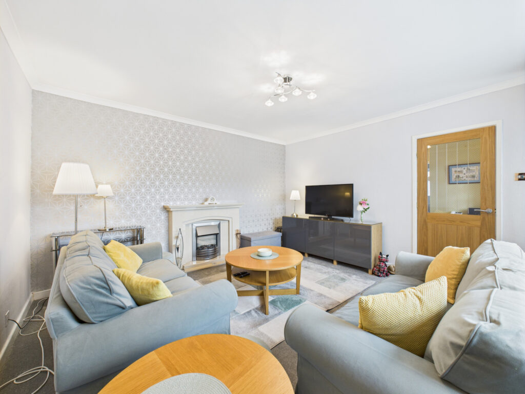 Step through the front door into a neatly enclosed entrance vestibule, which opens into a bright and welcoming hallway. Immediately, the home’s warmth and sense of space become apparent, with a neutral colour palette and well-maintained finishes throughout. The hallway also features a staircase rising to the first floor, cleverly adding to the home’s versatile layout. The lounge, located to the front of the property, is a tranquil and elegant space. A large bay window floods the room with natural light, while the neutral décor offers the perfect canvas for your own personal style. Whether it’s relaxing on a quiet evening or entertaining guests, this room offers a wonderful sense of comfort and calm.
