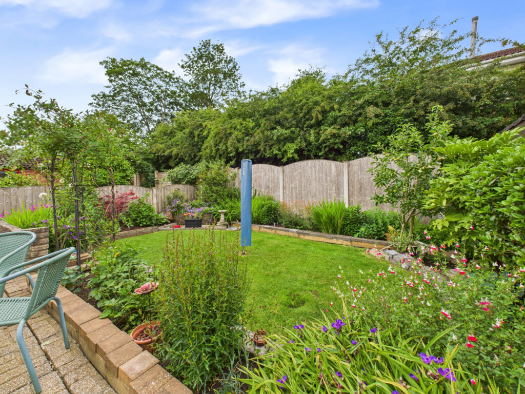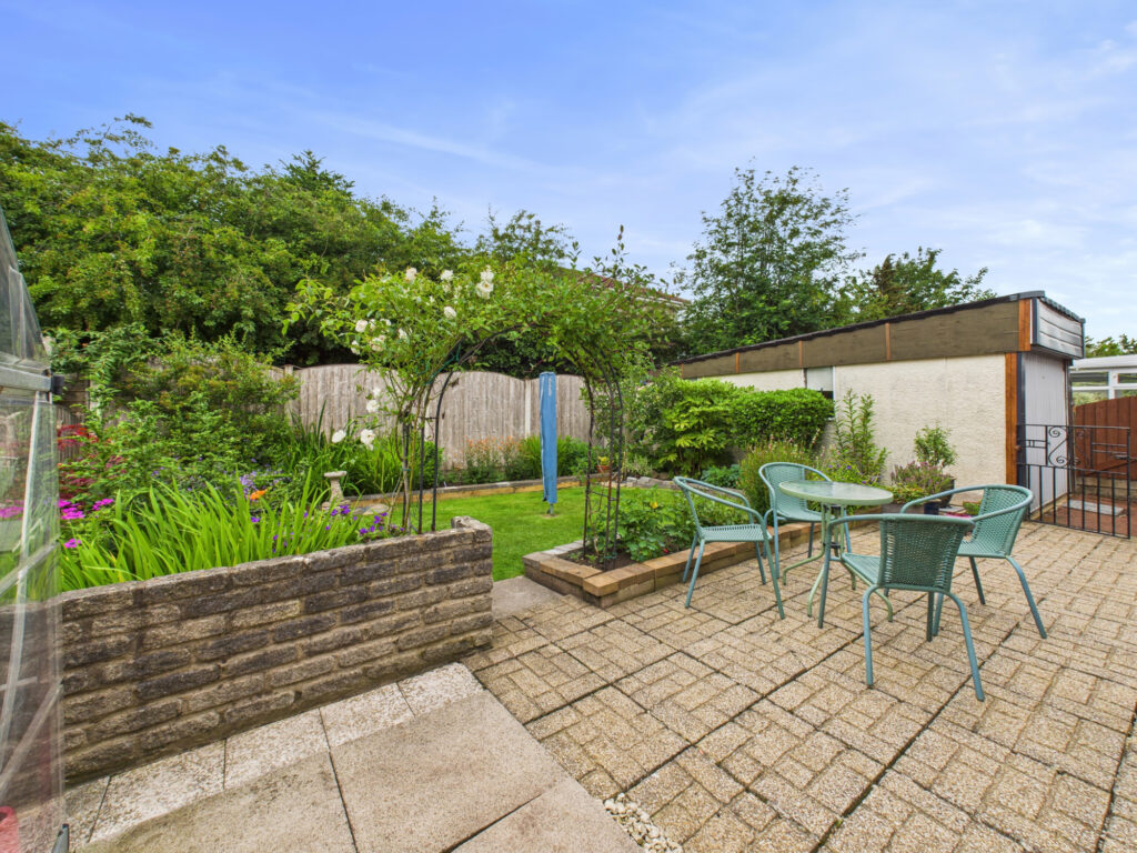 Outside, the rear garden is a true highlight of the property, beautifully landscaped and benefitting from a good degree of privacy. With a well-tended lawn, mature borders, and a paved patio area, it’s the perfect setting for morning coffee, summer BBQs, or simply enjoying the peaceful surroundings.