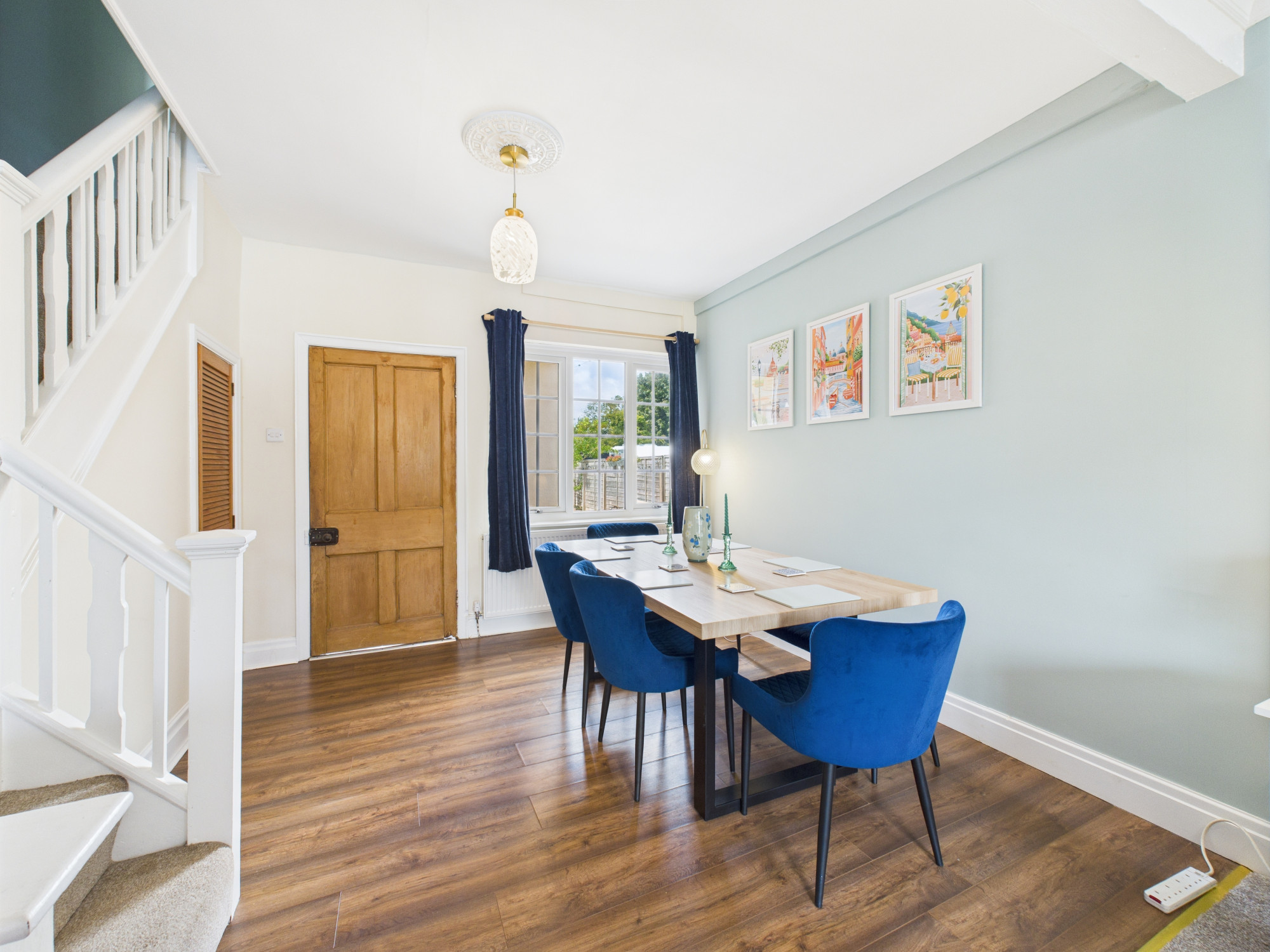 From the moment you arrive, the home welcomes you with its attractive kerb appeal and block-paved driveway providing valuable off-road parking. Step inside through the front entrance and into the entrance vestibule, setting the tone for the rest of the property with its inviting and homely feel. The front living room is a real standout space, showcasing a beautiful Victorian-style feature fireplace that adds character and charm. Built-in alcove storage and a double-glazed front window complete the space, creating a cosy yet bright and airy atmosphere. Flowing seamlessly from the living room is a generous dining area, ideal for entertaining or family meals, which also features an attractive open staircase rising to the first floor.