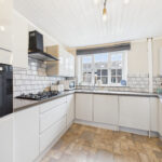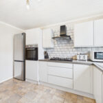 To the rear of the home is a stylish, modern kitchen fitted with a range of contemporary units, integrated appliances, and tasteful finishes. It offers direct access out to the private rear garden—making indoor-outdoor living a breeze and providing a lovely spot to enjoy morning coffee or al fresco dining.