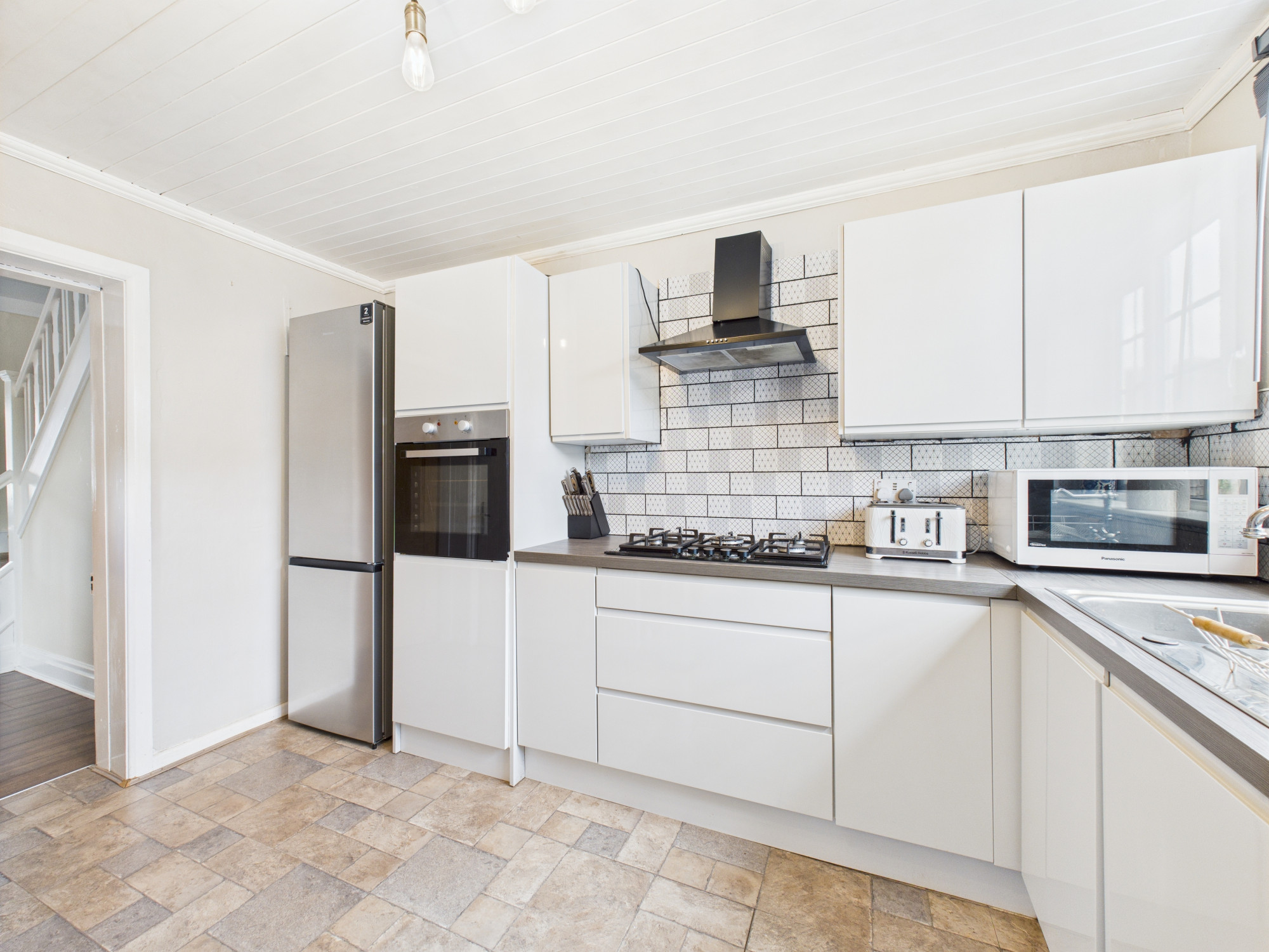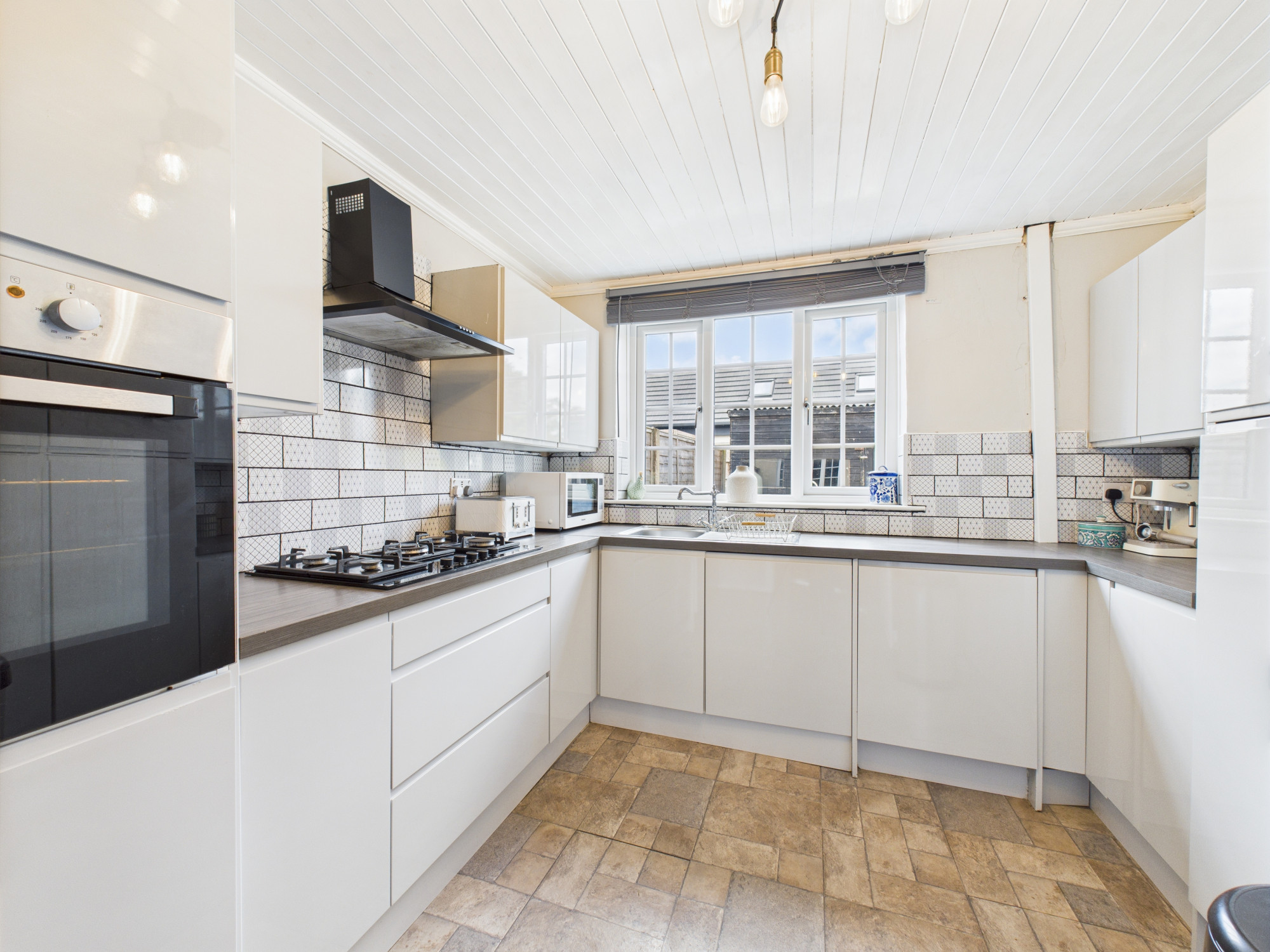 - Contemporary kitchen with integrated appliances and direct access to rear garden