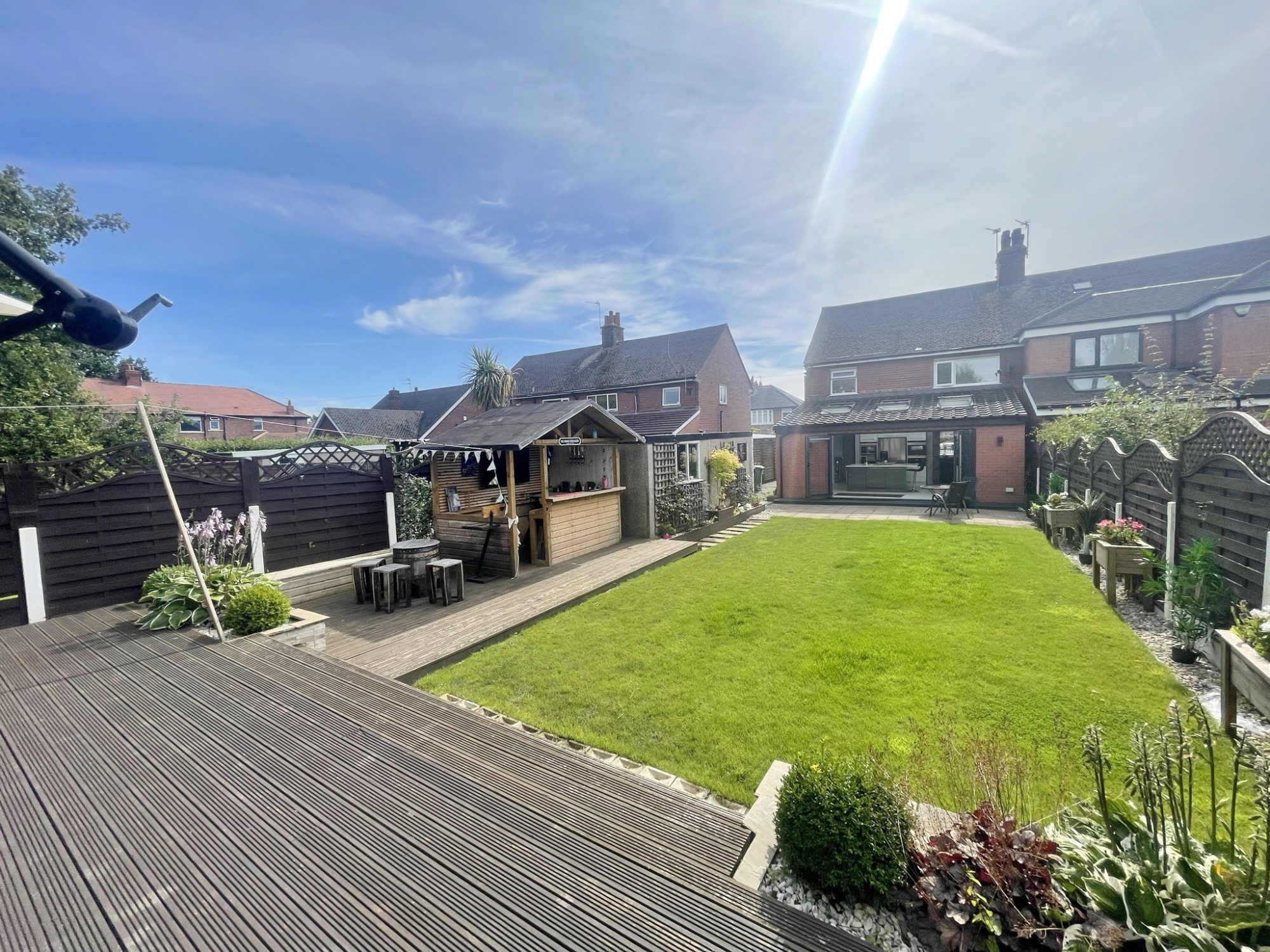A simply deceptive and truly outstanding threeΒ bedroomedΒ family home. The property has been lovingly and meticulously renovated and exudes a wonderfully homely ambiance from the first step across the threshold. The property provides a lovely arrangement of space and a stylish finish with tasteful decor and quality fixtures and fittings throughout. The real centre piece of the home is the open plan family living layout combining the high specification kitchen/ dining area that creates wonderful family space and a fantastic area in which to entertain in style. The entrance hallway provides accessΒ up toΒ the first floor and both the great sized formal lounge, a handy cloakroom and a great utility room.Β On theΒ first floor are three bedrooms (two of which are fantastic sized doubles) and a modern three piece family bathroom. Externally certainly does not disappoint either; starting at the front which is laid toΒ golden gravel and also offers a driveway that is laid to paving.Β Whilst at the rear there a truly fabulous landscapedΒ garden which is extensively which has an extensive paved patio area perfect for al-fresco dining and in turn tiers up to a raised decking where you can sit out and enjoy the wonderful sunny aspects. There is also aΒ detached garage with anΒ up and over front door and side personal door. ThisΒ splendid property hasΒ so much to offer, you simply have to arrange a viewing to avoid disappointment.
