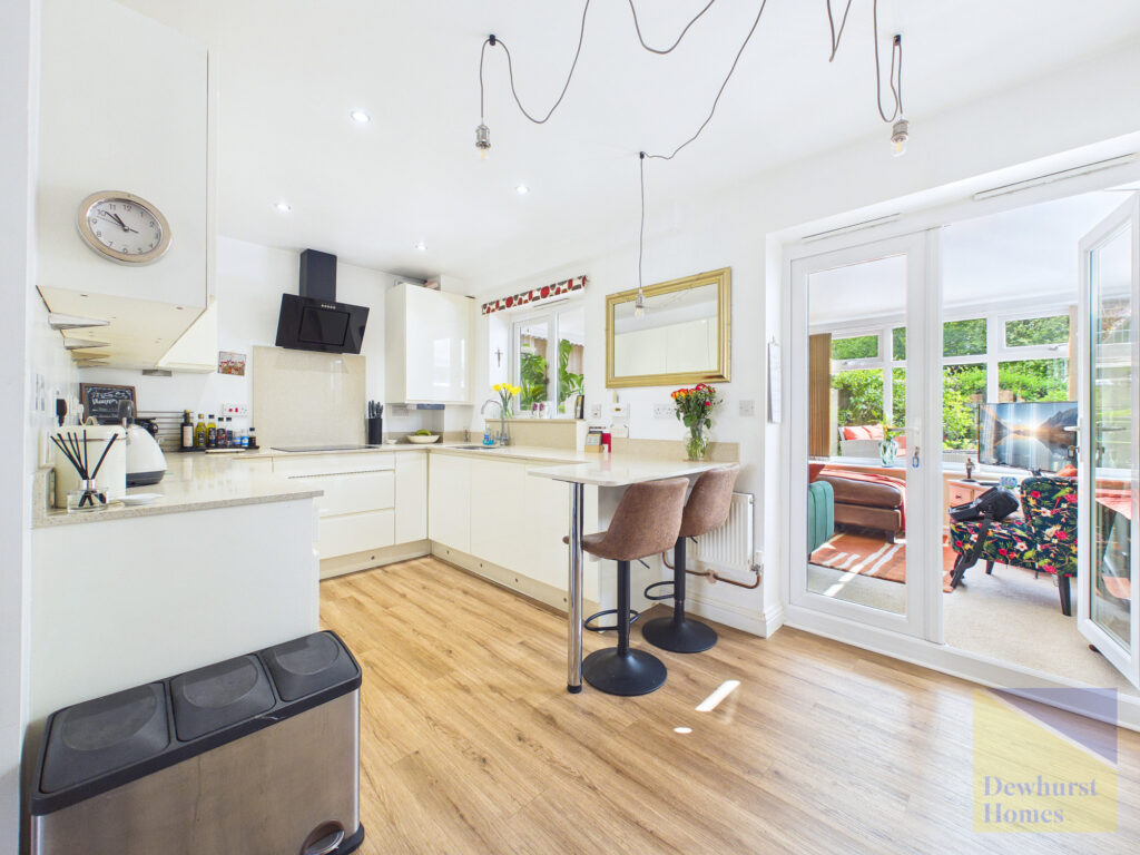 The lounge flows effortlessly into a beautifully designed kitchen, where form meets function. Thoughtfully laid out with modern living in mind, this space offers both style and efficiency, making it ideal for everything from family meals to entertaining guests. Beyond, the conservatory floods the space with natural light and provides a seamless connection to the garden, creating a versatile additional living area that can be enjoyed all year round.