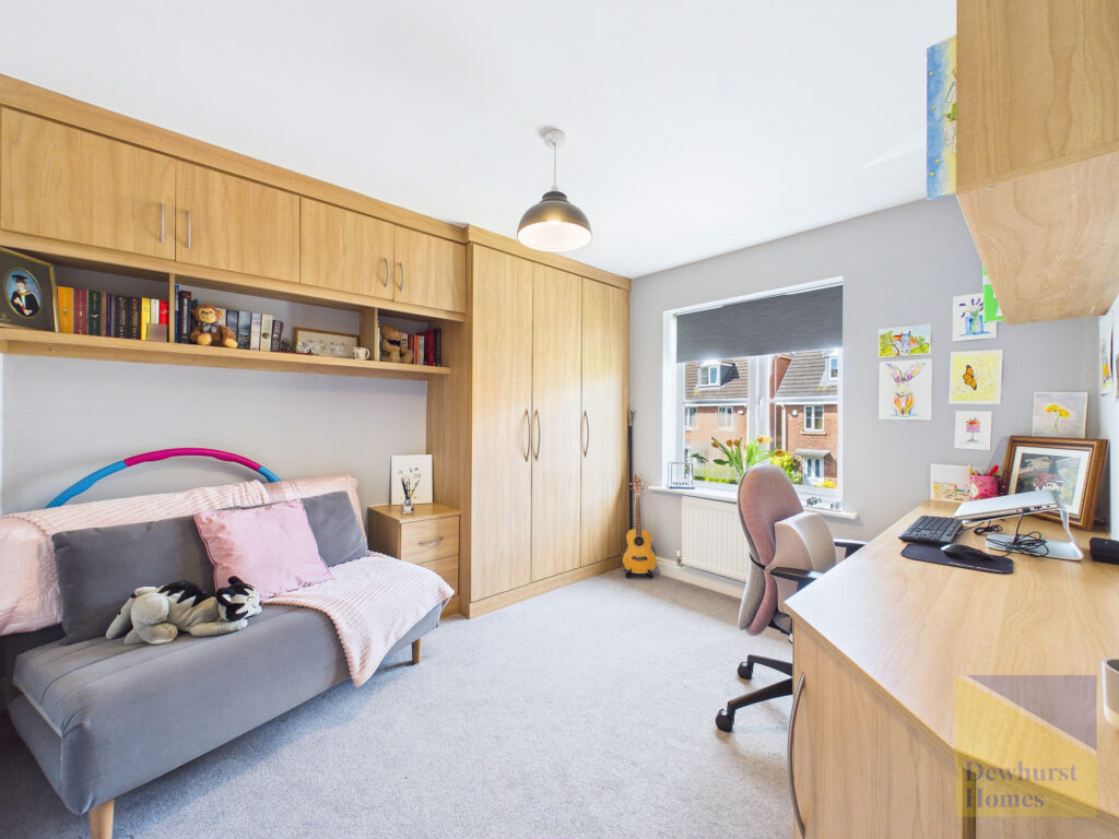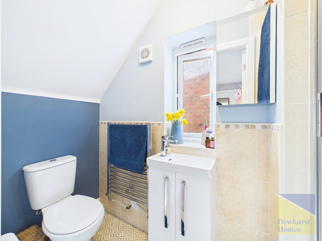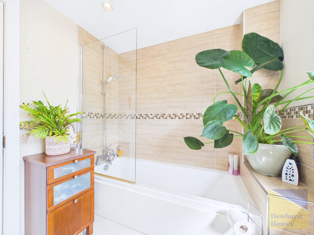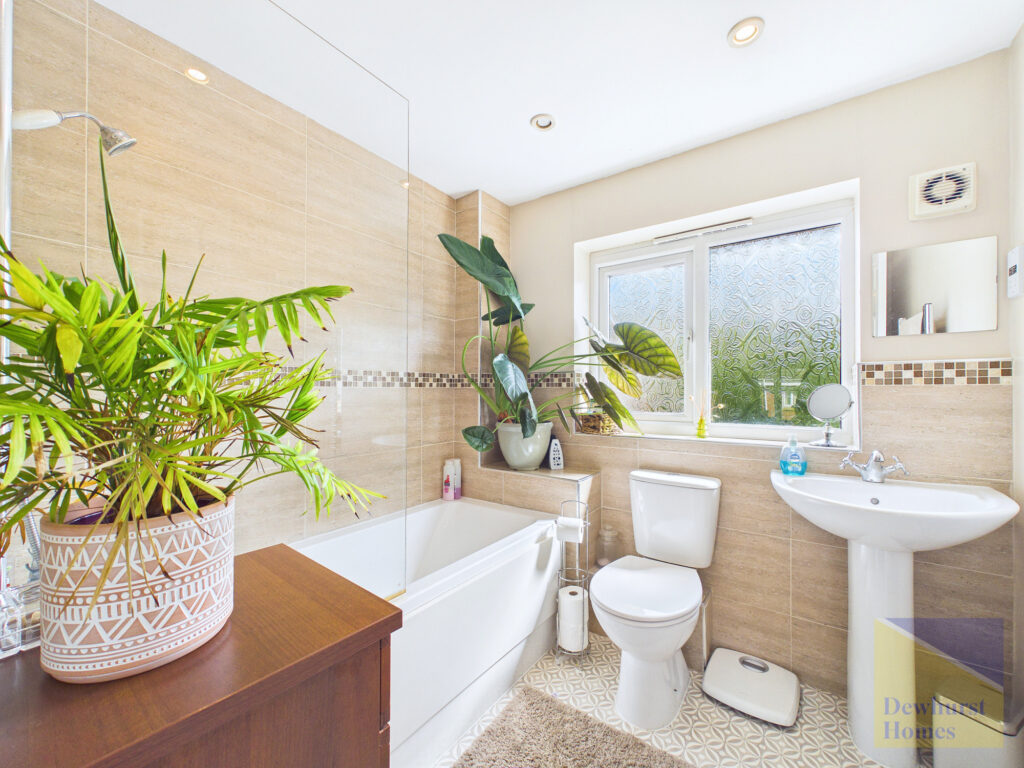 The first floor continues to impress, offering two generously proportioned double bedrooms, each benefiting from fitted storage and a calming, well-presented finish. A contemporary family bathroom serves this level, alongside an additional storage cupboard, ensuring practicality is never compromised.