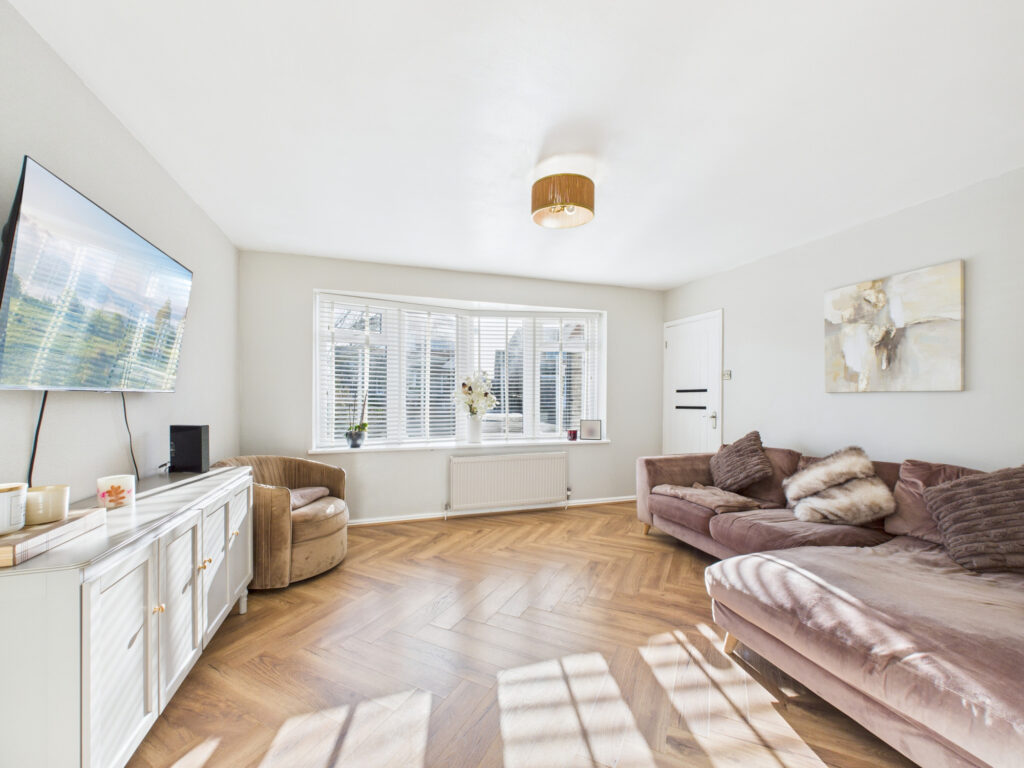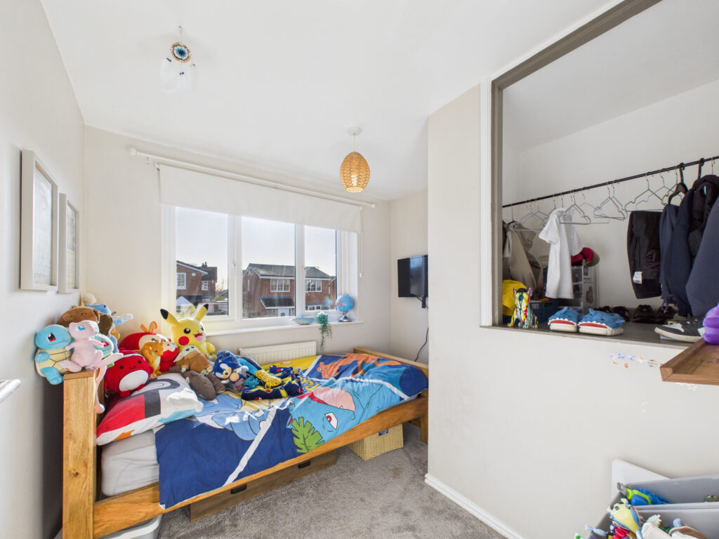 To the first floor, the accommodation is equally well considered. There are three well-proportioned bedrooms, two of which are generous double rooms offering ample space for wardrobes and additional furniture. The third bedroom makes an ideal child’s room, guest bedroom, or nursery. All bedrooms are served by a stylish and contemporary four-piece family bathroom, featuring modern fittings and tasteful tiling, providing both comfort and functionality for a growing family.