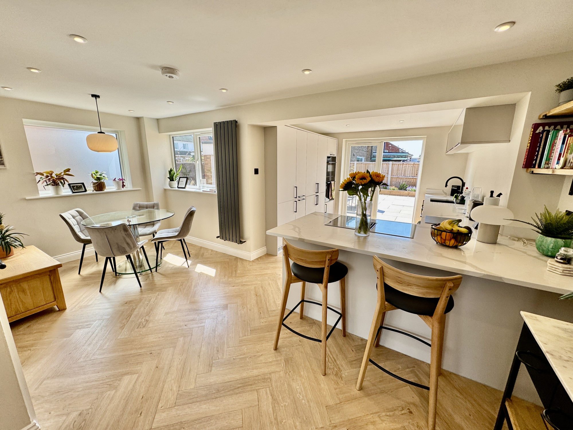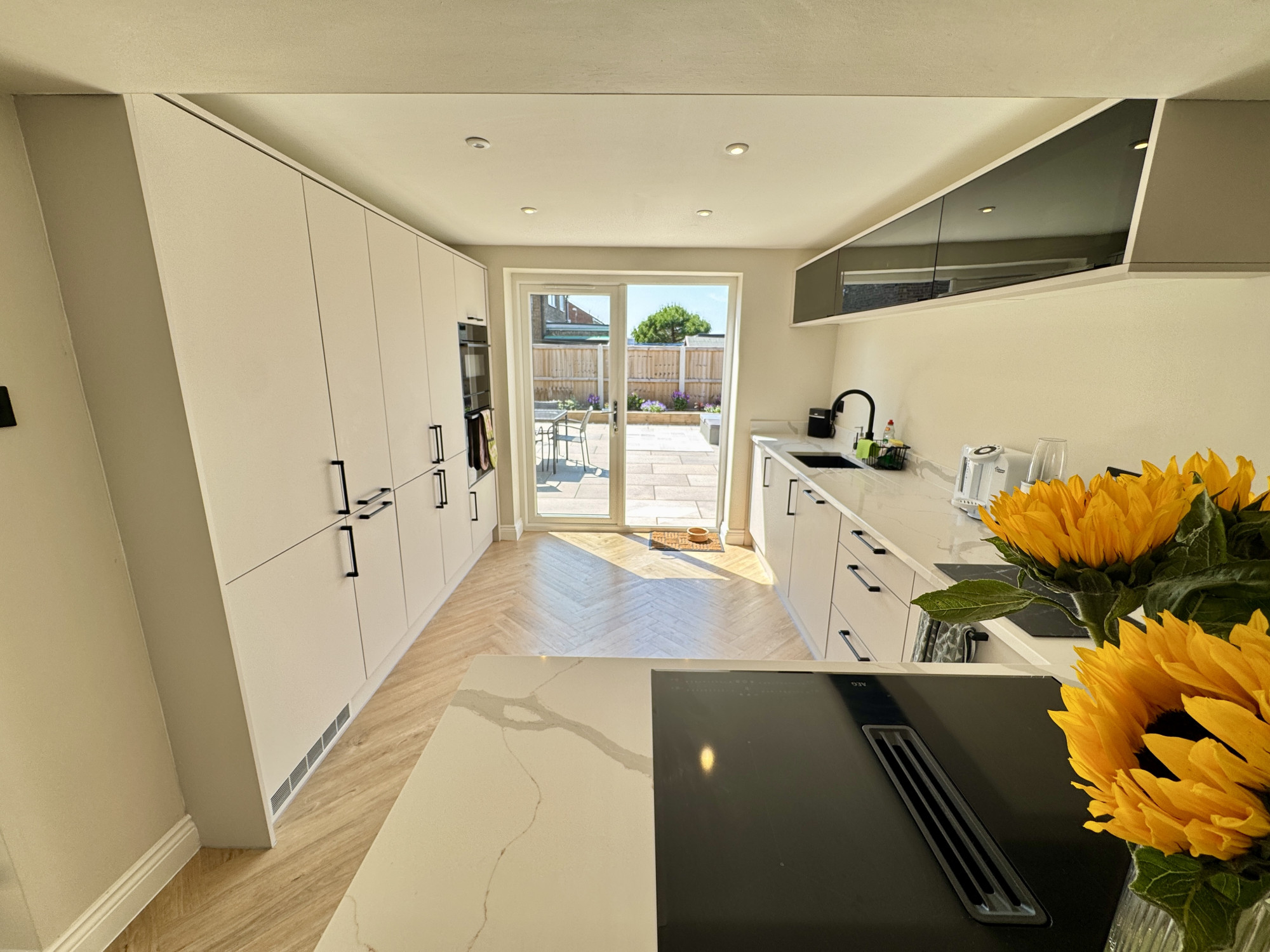 Upon entering the property, you are welcomed by a bright and inviting entrance hallway that sets the tone for the quality and style found throughout. A convenient downstairs WC adds everyday practicality, while the layout flows effortlessly into the main living spaces. The standout feature of the home is the impressive L-shaped open-plan designer kitchen, finished with sleek marble worktops and offering an abundance of storage and preparation space. With ample room for both dining and entertaining, this space is perfectly suited to modern family living and social gatherings alike.