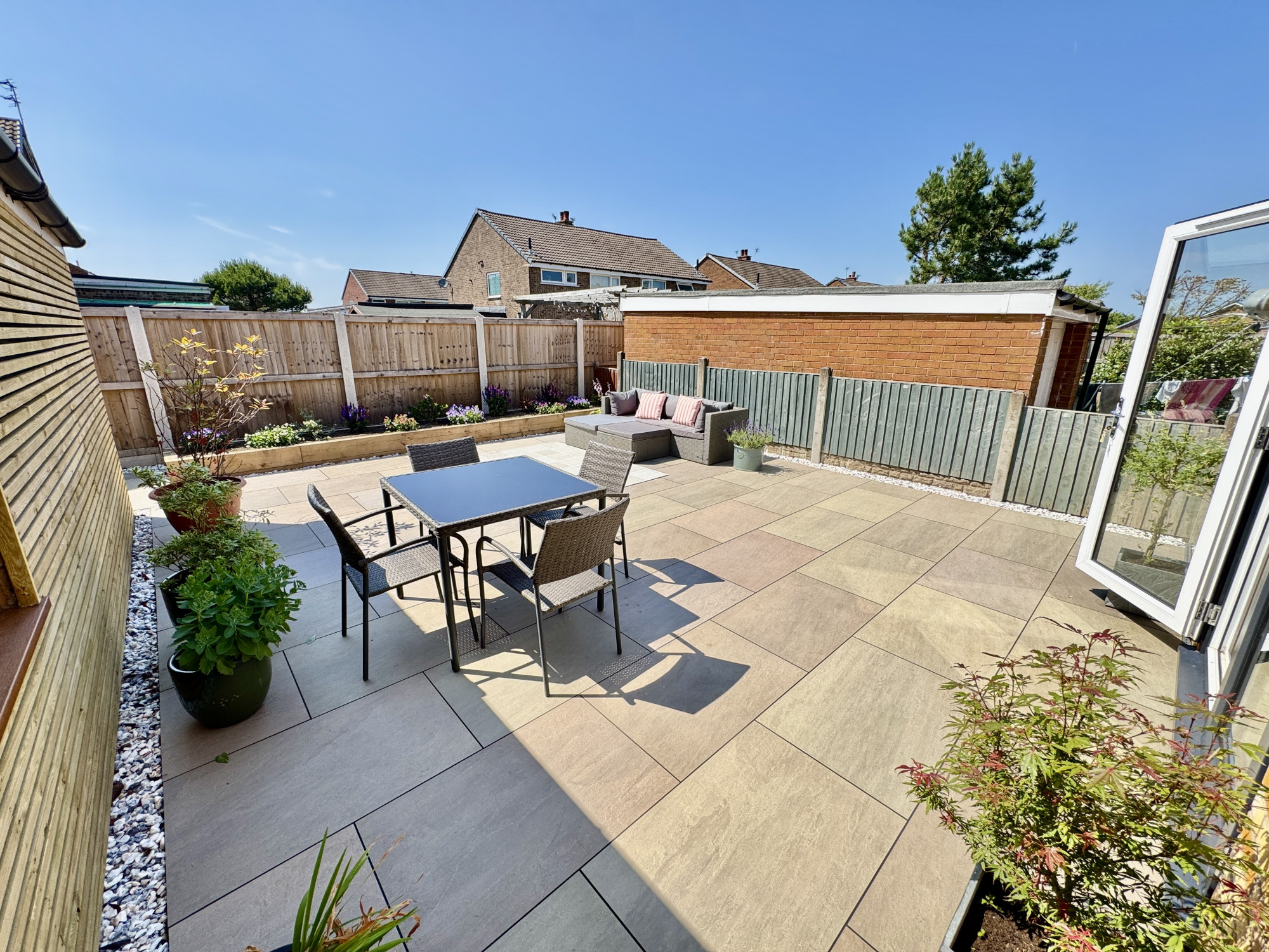 Externally, the property offers excellent outdoor space. The rear garden is generously sized and designed for low maintenance, providing an ideal setting for outdoor dining, entertaining guests, or simply unwinding in a private and peaceful environment. To the front, a private driveway offers off-road parking for up to three vehicles, adding further convenience for homeowners and visitors alike.
