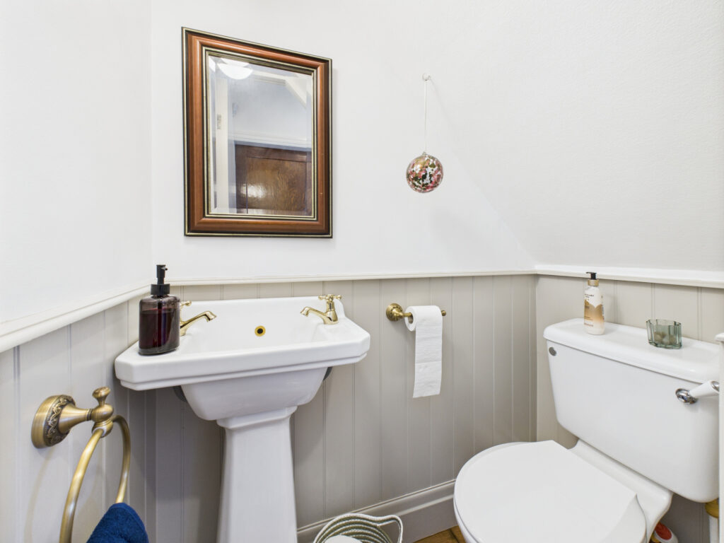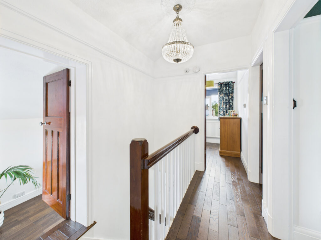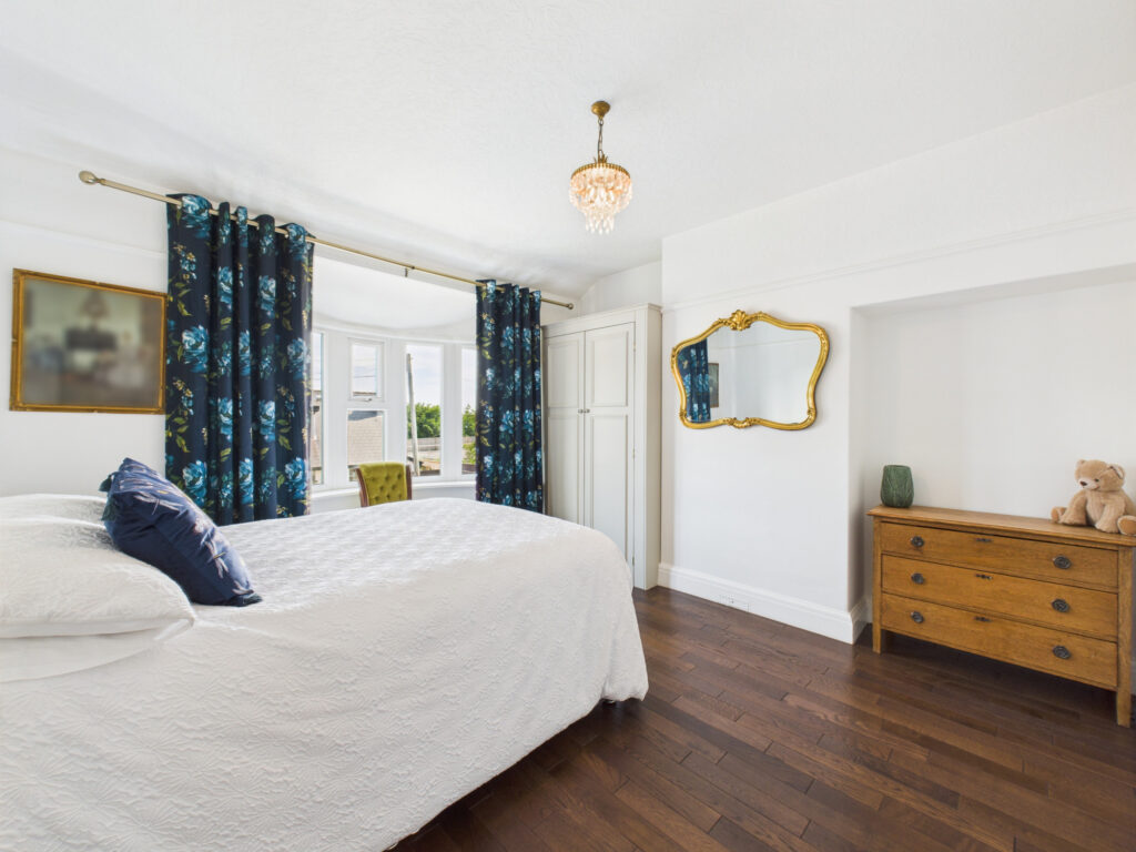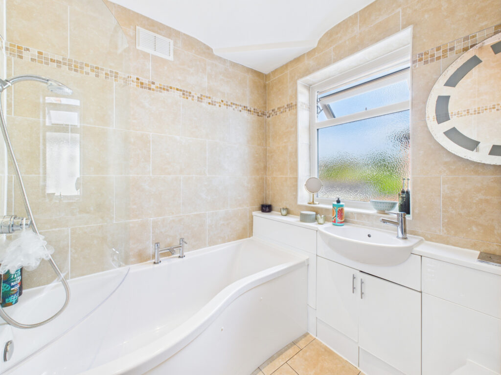 Upstairs, the first floor offers four thoughtfully designed bedrooms, each finished in calming, neutral tones and enjoying an abundance of natural light. The two largest rooms are generous doubles, offering plenty of space and a touch of refined luxury. The family bathroom is sleek and contemporary, fitted with quality fixtures and designed for both comfort and ease of maintenance.