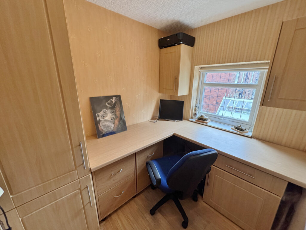Head upstairs and you'll find a generous spacious landing, bathed in natural light, leading to four well-proportioned double bedrooms. The master bedroom is a showstopper, enjoying another bay window and a wide range of fitted wardrobes. Bedroom two also features built-in storage, while bedrooms three and four are excellent doubles, ideal for children, guests, or even a dressing room. A dedicated home office is fitted with bespoke study furniture – making remote working or study both stylish and practical.