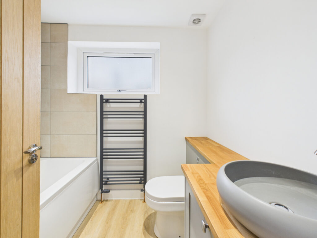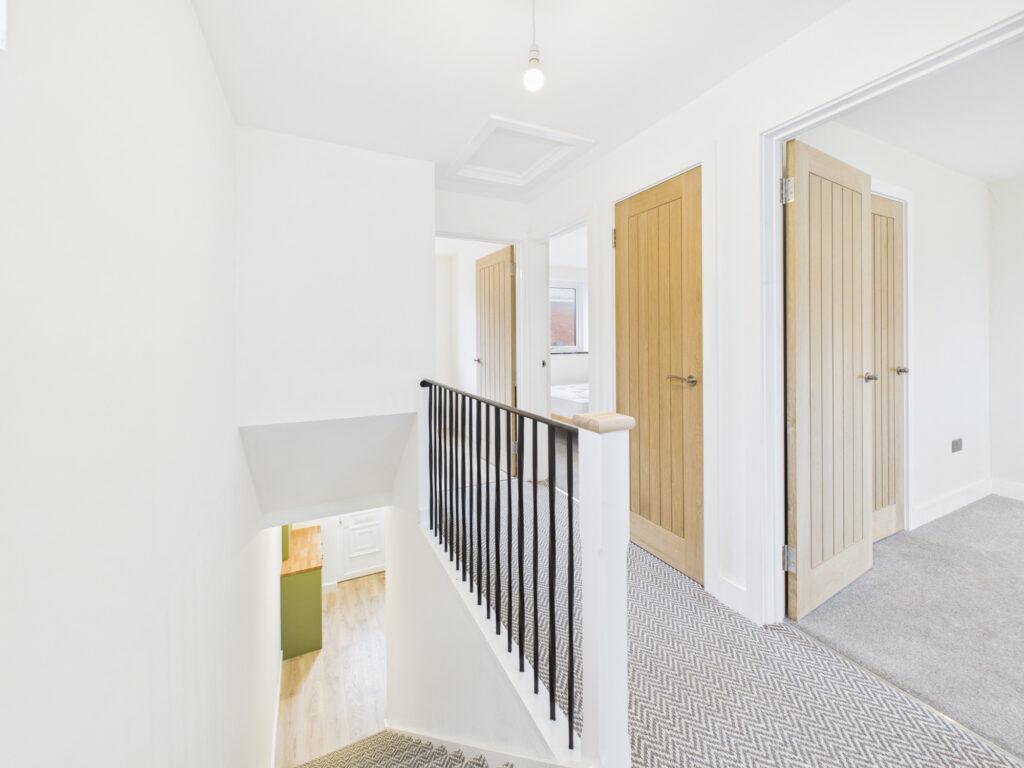 The first-floor landing provides access to three well-presented bedrooms and the family bathroom. Bedroom One is a generous double with built-in storage and a bright, airy atmosphere as is bedroom two. Bedroom Three is a good-sized single, perfect for a nursery, home office, or dressing room. The modern family bathroom is stylishly fitted, featuring contemporary tiling, a bath with overhead shower, washbasin, and WC — the ideal space to unwind at the end of the day.