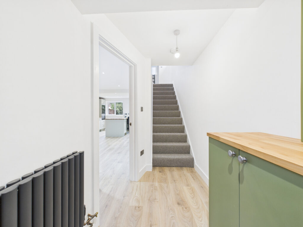 Step into a welcoming entrance hallway, offering plenty of space for coats and shoes and giving an immediate sense of warmth and style. Stairs lead to the first floor, while the hallway flows seamlessly into the heart of the home. The open-plan lounge and kitchen is a real showstopper — light, spacious, and perfect for modern living. The lounge area offers a comfortable and relaxing space for family time or entertaining guests, while the stylish fitted kitchen boasts an extensive range of matching wall and base units with complementary work surfaces and sleek finishes. Integrated appliances include a fridge/freezer, microwave, and electric hob, along with a charming Belfast sink that adds character and practicality. There’s ample room for a dining table or breakfast area, making it a truly sociable space where cooking, dining, and relaxing blend beautifully together.