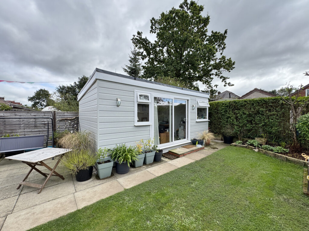 Ascend up the first floor where the landing paves the way to three well-sized bedrooms designed for comfort and rest. Last but no means least is a beautiful modern three piece bathroom which is tastefully designed with high-quality fittings and fixtures and features a bath with shower over, wash hand basin and low level wc. Outside, the south-facing rear garden is a true highlight, offering a sunny and inviting space for relaxation and play. An exceptional garden room, with potential for an annexe or additional versatile use, adds even more appeal to this fantastic property.