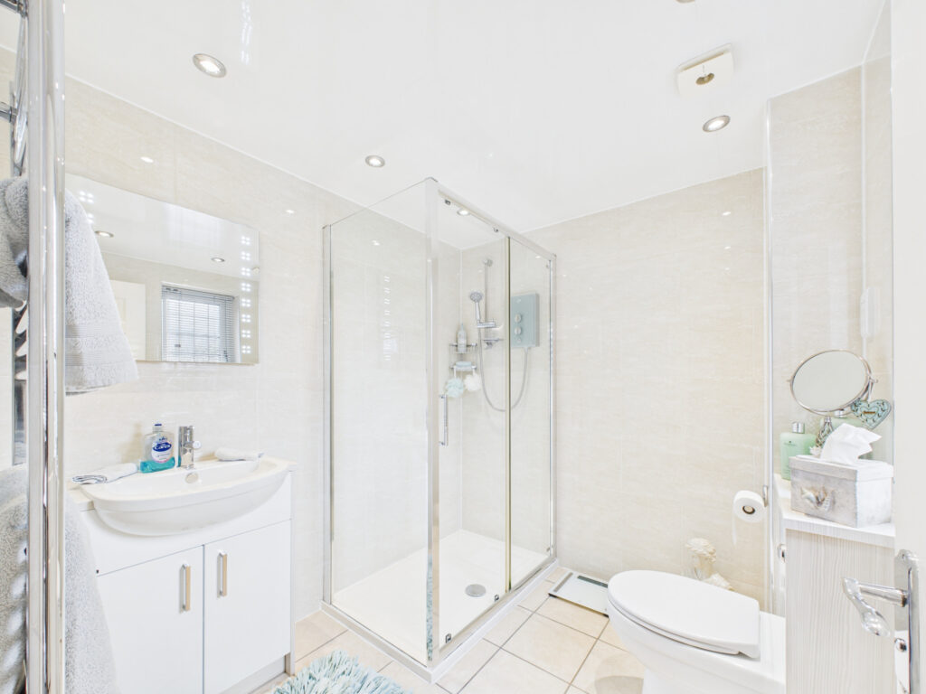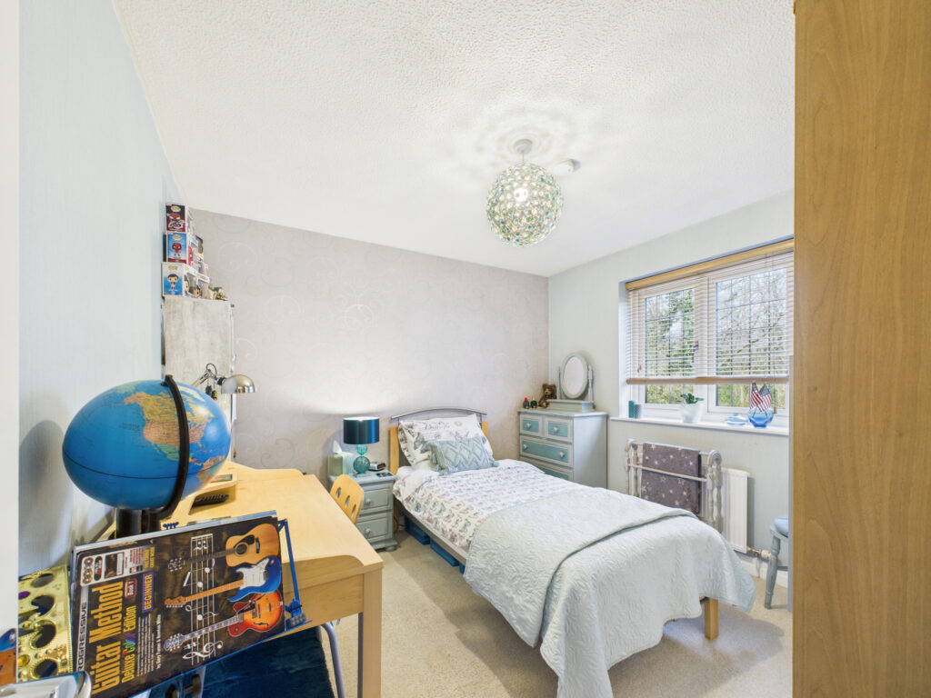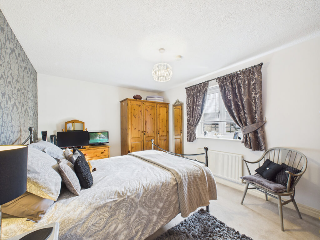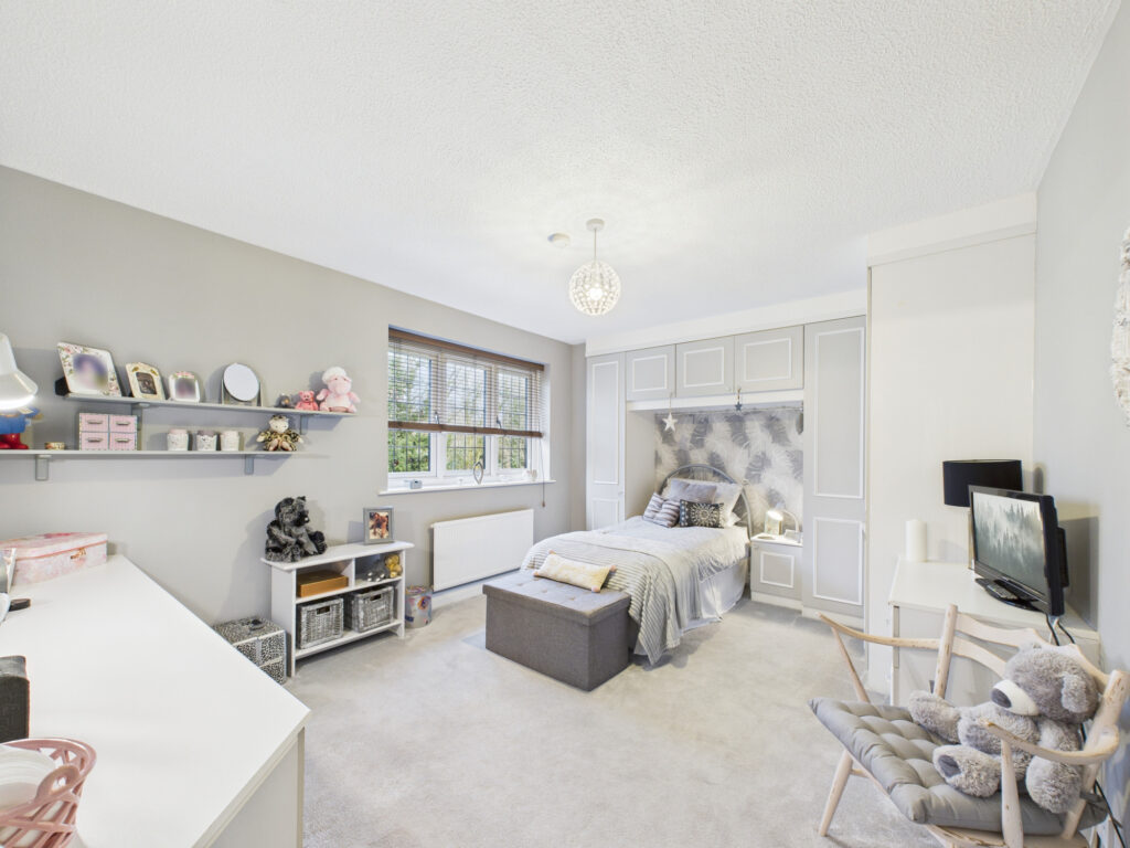 Ascending to the first floor, the sense of space and quality continues. The principal bedroom suite is an impressive retreat, featuring an extensive range of bespoke built-in furniture and a contemporary three-piece en-suite, finished to a high standard. Three further bedrooms, all generously proportioned, are arranged around a central landing and offer excellent flexibility for family members or guests. These rooms are served by a spacious and well-appointed four-piece family bathroom.